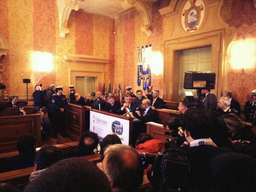 “Sono molto commosso e mi dispiace di non parlare la vostra bella lingua. Ma voglio raccontarvi una storia: sono stato in tour negli ultimi due anni, e in ogni città c’era almeno un veterano che nella pausa veniva nel backstage. E durante uno show negli Usa quando stavo per tornare sul palco uno di questi ‘ragazzi’ mi ha detto: “Tuo padre sarebbe orgoglioso di te”. Io sono molto fiero di mio padre e ringrazio i cittadini di Aprilia e di Anzio, che hanno fatto tutto questo per me. Sono estremamente commosso. Ringrazio il sindaco e i cittadini per l’onore che mi hanno fatto invitandomi qui”.