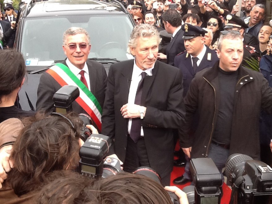 Prima di entrare in Comune per partecipare alla cerimonia, il cantante dei Pink Floyd si è fermato a salutare i fan, mandando baci e urlando “I love you”. Al suo ingresso a Villa Sarsina, sede del consiglio comunale, una corale ha intonato due brani tratti dal monumentale “The Wall”: “Bring the boys back home” e “Another Brick in the wall”.