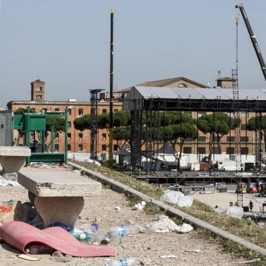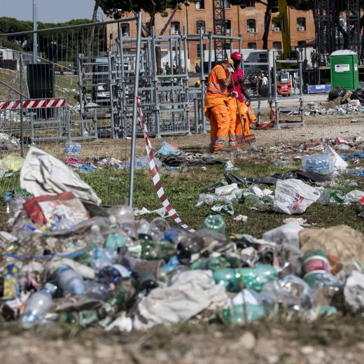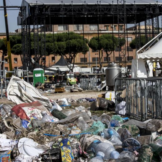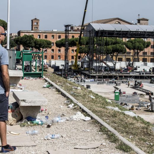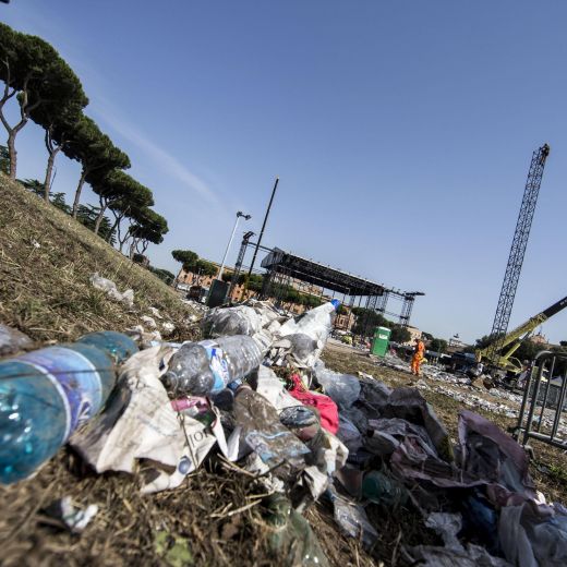 ROMA – Il giorno dopo il concerto dei Rolling Stones, il Circo Massimo è ricoperto di lattine, bottigliette e rifiuti vari.