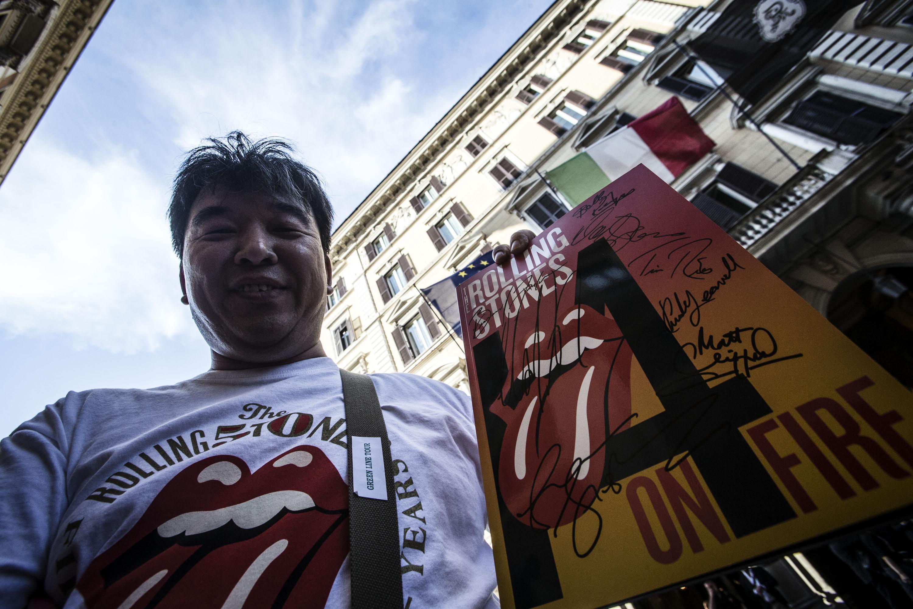 A salutare i fan radunati sotto, anche Keith Richards che si è affacciato dal balcone. Così i fan hanno potuto scattare qualche foto. “Sono siciliano – racconta un signore – ho 47 anni e seguo i Rolling Stones da quando ne ho 15. Domenica andrò al concerto come sono andato a quello del 2006 a Milano e nel ’90 a Torino.” “Anche io sono un grande appassionato del gruppo da quando avevo 15 anni – racconta un signore romano – Prima ascoltavo Santana, poi ho dovuto scegliere tra i Beatles e i Rolling Stones e alla fine ho comprato il loro album Satisfaction. Ma purtroppo – conclude – non andrò al concerto perché i biglietti costavano troppo e c’è la crisi”.