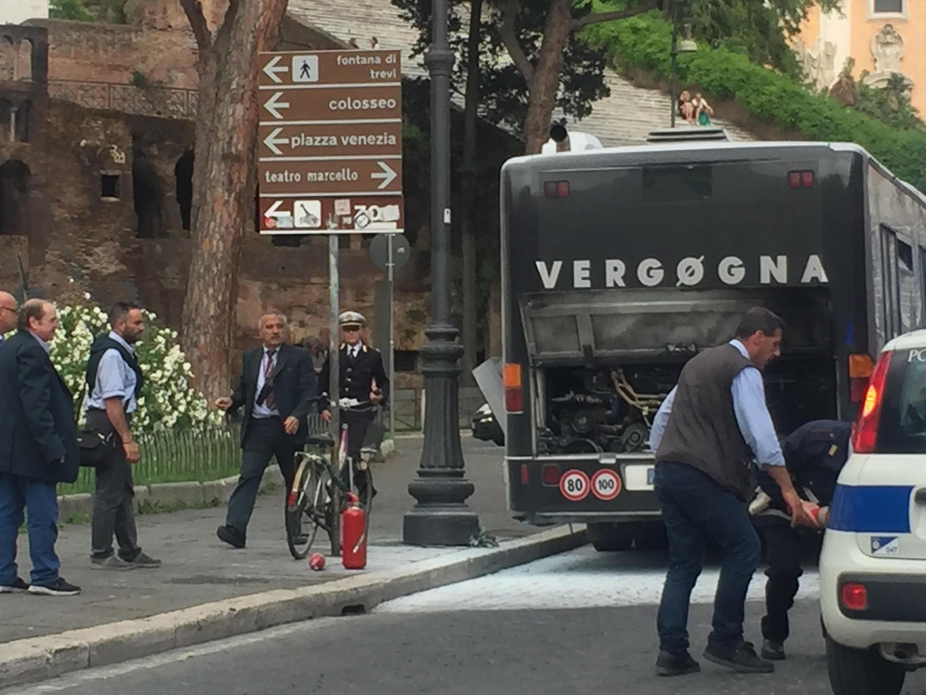 Il conducente ha fermato il mezzo e ha fatto scendere i circa 100 passeggeri a bordo, tra cui molti turisti. A transitare in quel momento una pattuglia dei carabinieri del comando piazza Venezia che si è fermata a prestare assistenza ai passeggeri e all’autista.