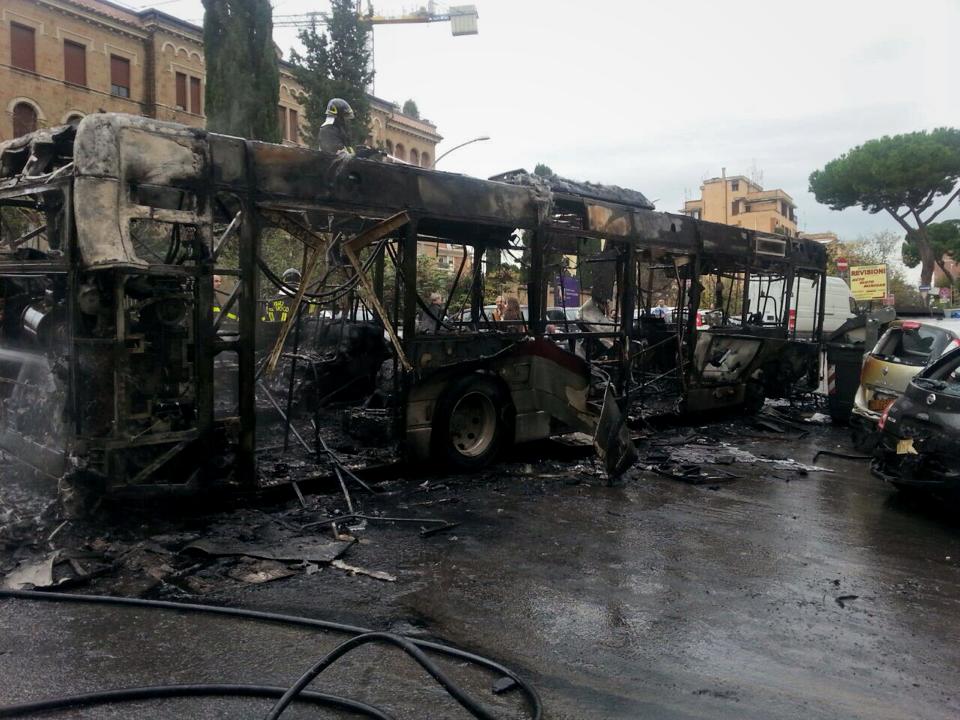 Inutili i tentativi di domare l’incendio. Alla fine l’intero autobus è stato distrutto dalle fiamme. Anche alcune auto in sosta lungo la strada sono rimaste danneggiate nell’incendio.