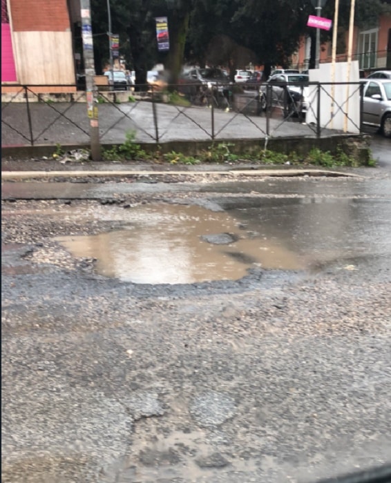ROMA – Prima la neve poi l’abbondante pioggia caduta senza pausa negli ultimi due giorni. A Roma le strade sono piene di buche molto profonde ed estese. Si tratta di un pericolo per chi guida l’auto o lo scooter. Piene di acqua e di fango, non sempre è facile evitarle e per chi ci capita dentro il pericolo è assicurato.