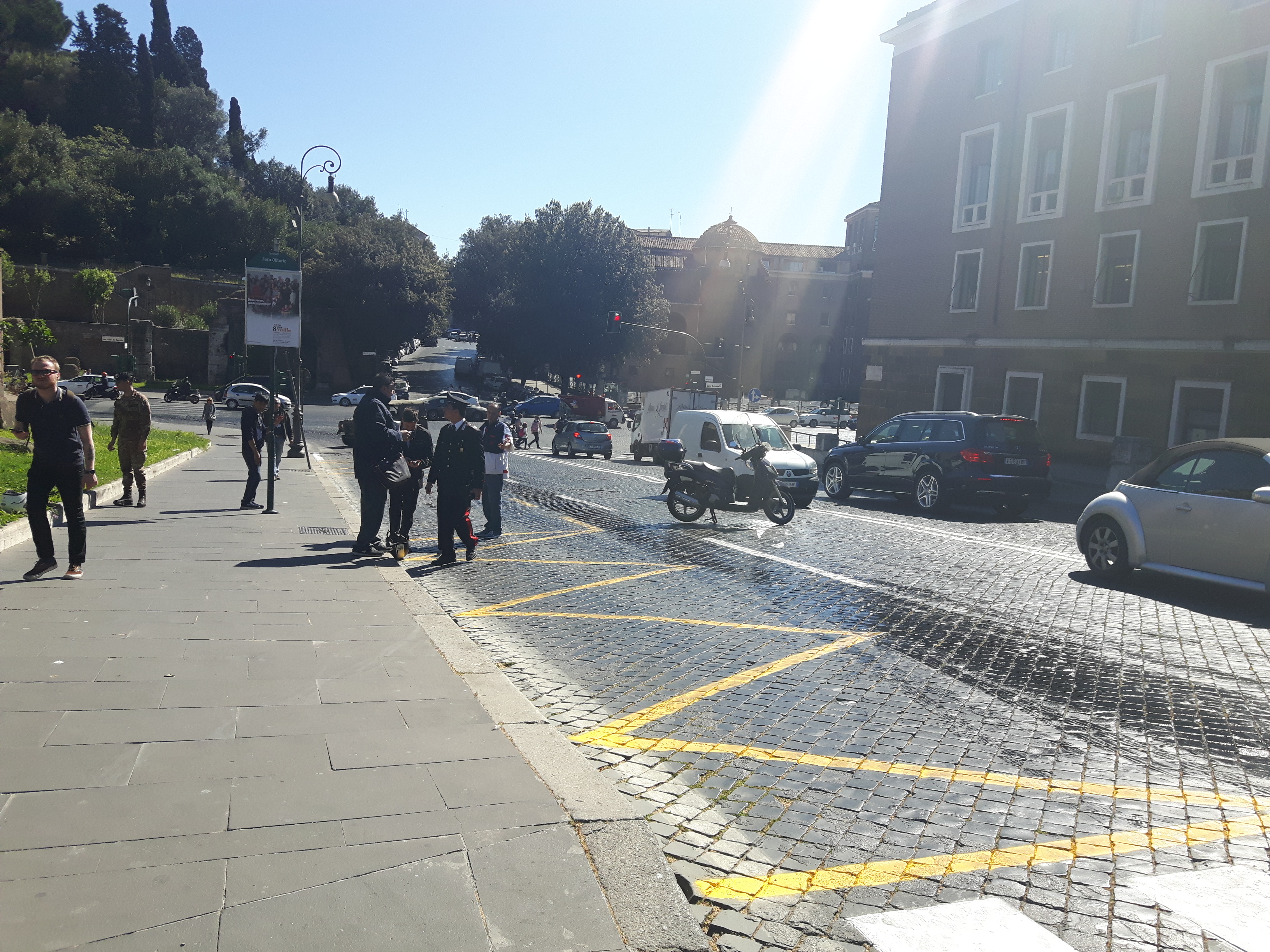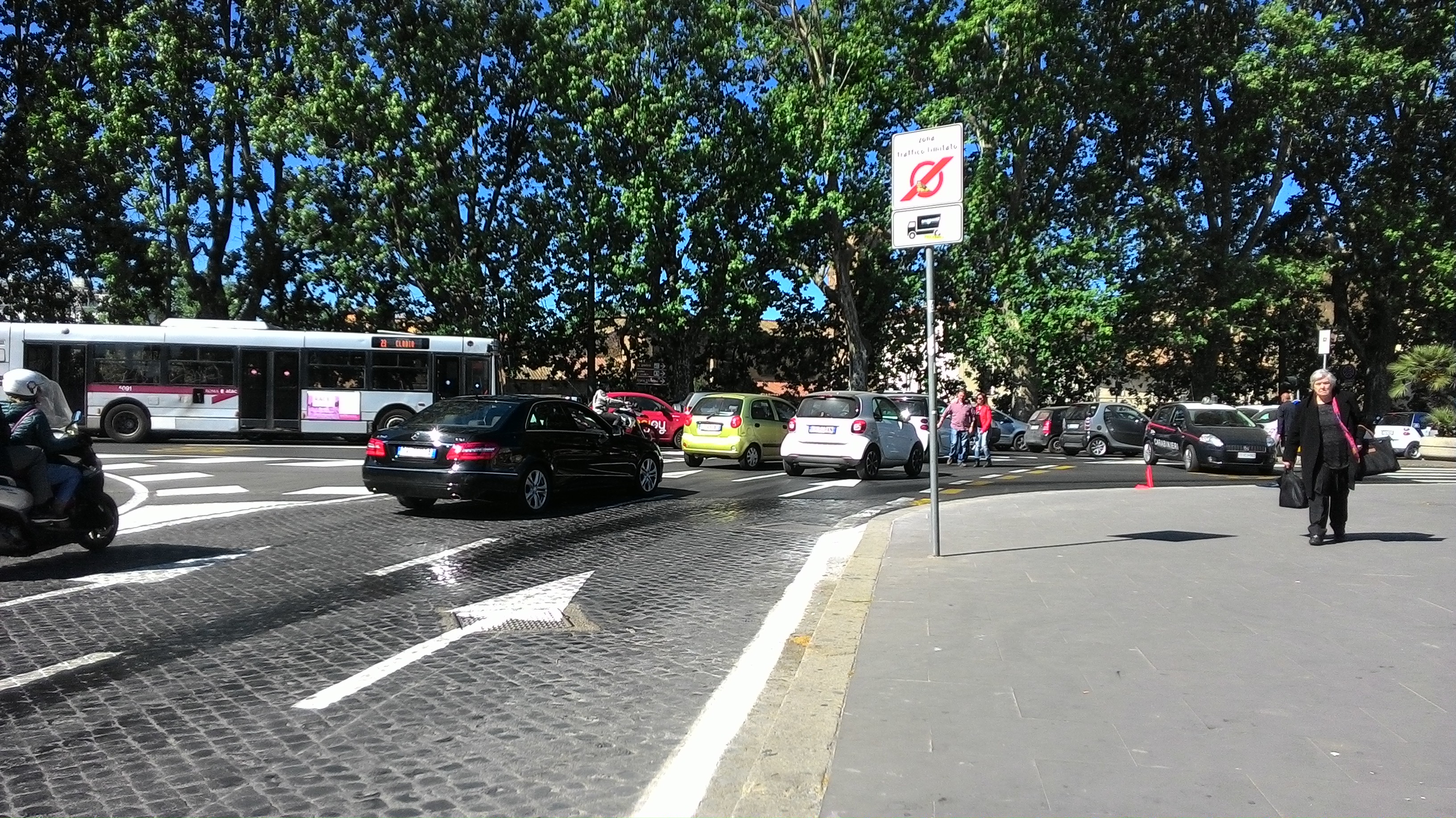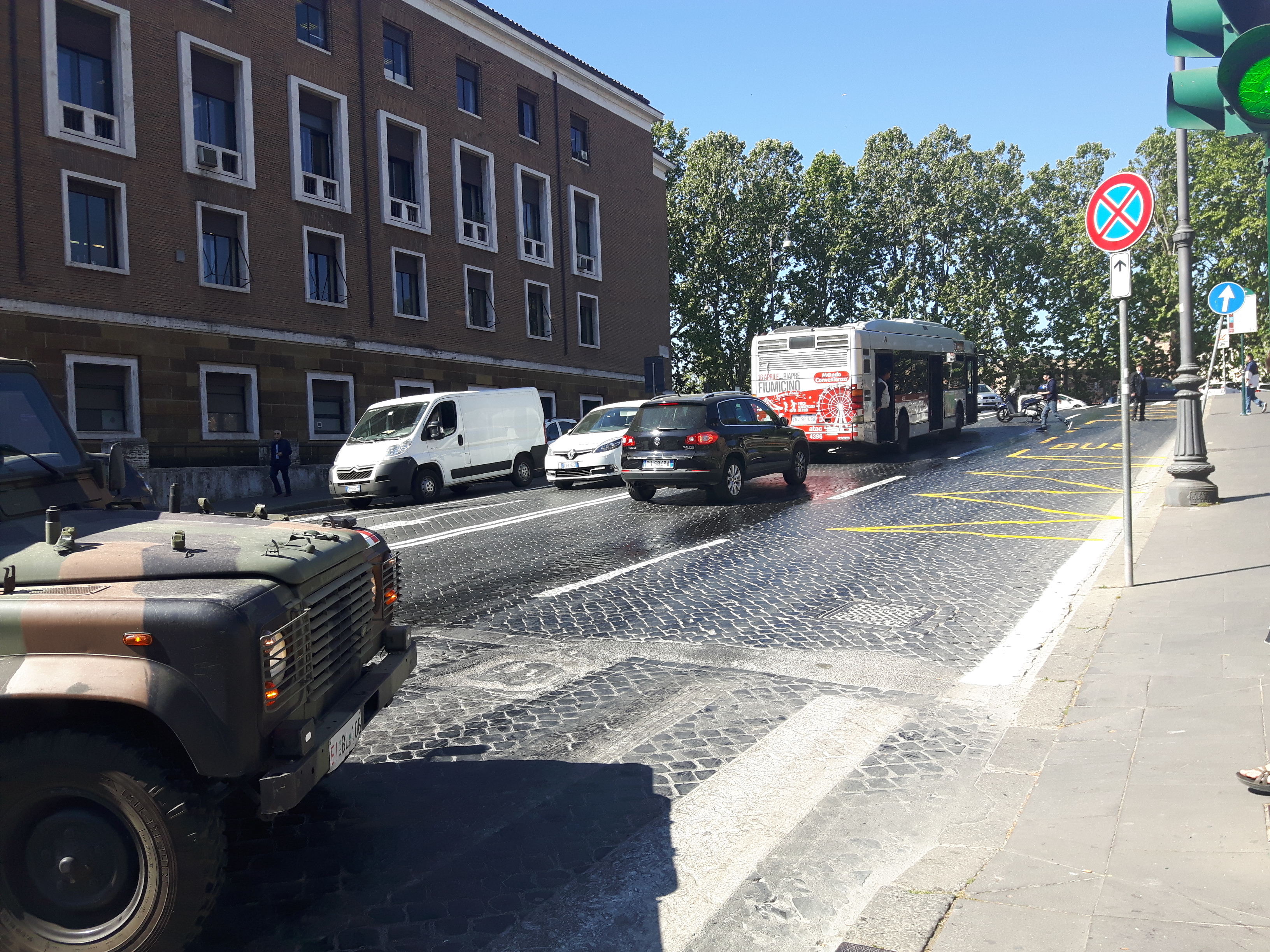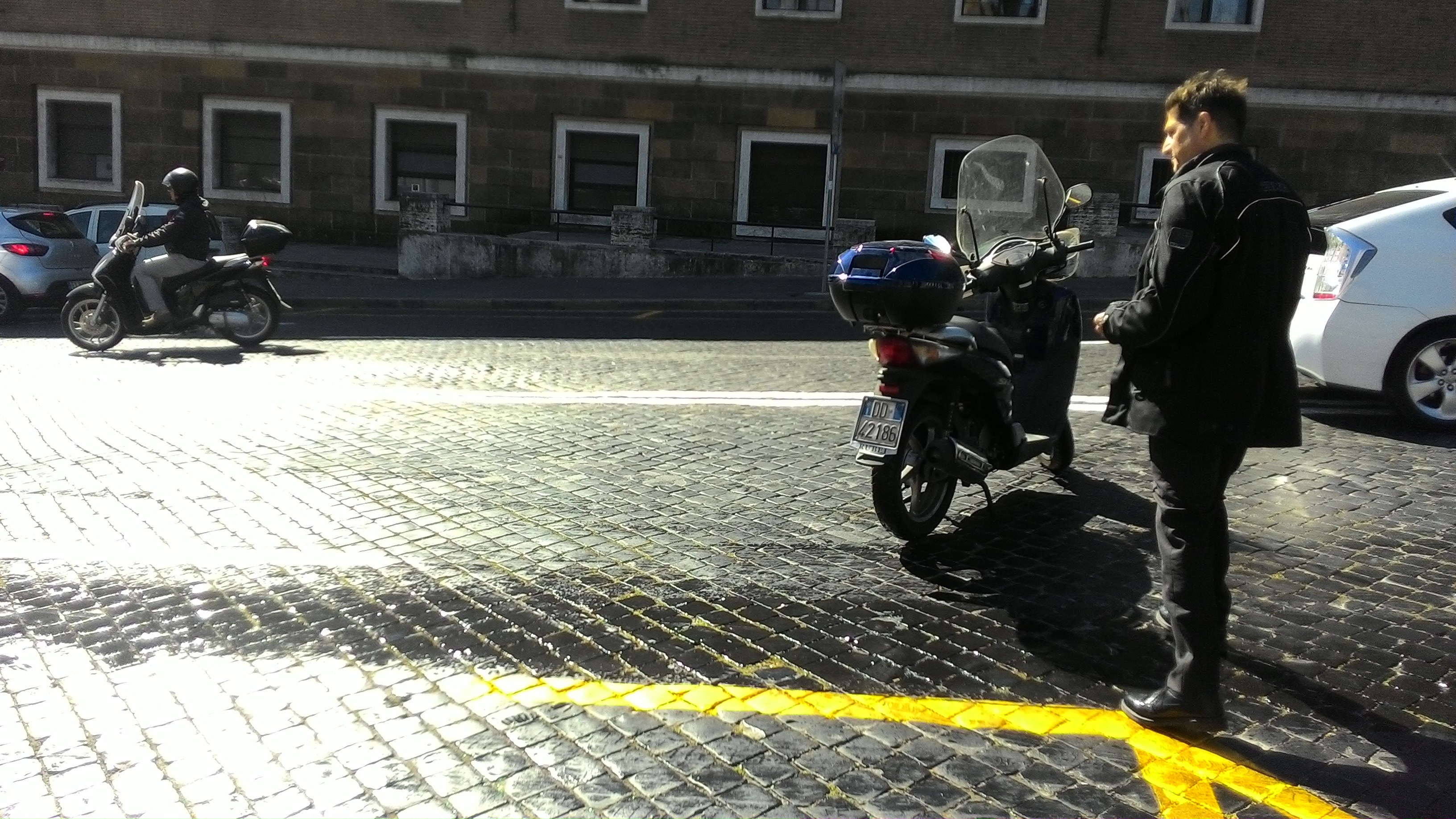 ROMA – Chiazza d’olio a Roma, e decine di motorini finiscono a terra. Accade la mattina di mercoledì 20 aprile tra via del Teatro di Marcello e la Sinagoga di Roma su Lungotevere de’ Cenci. Siamo in pieno centro, a due passi dall’anagrafe e dal Campidoglio: la scia lunga almeno un chilometro comincia proprio sotto la scalinata del Campidoglio che ospita la sede del Comune di Roma, e prosegue per via del Teatro di Marcello finendo su Lungotevere davanti alla principale Sinagoga di Roma. A causarla è stato uno dei tanti mezzi pubblici disastrati che viaggiano sulle strade di Roma.