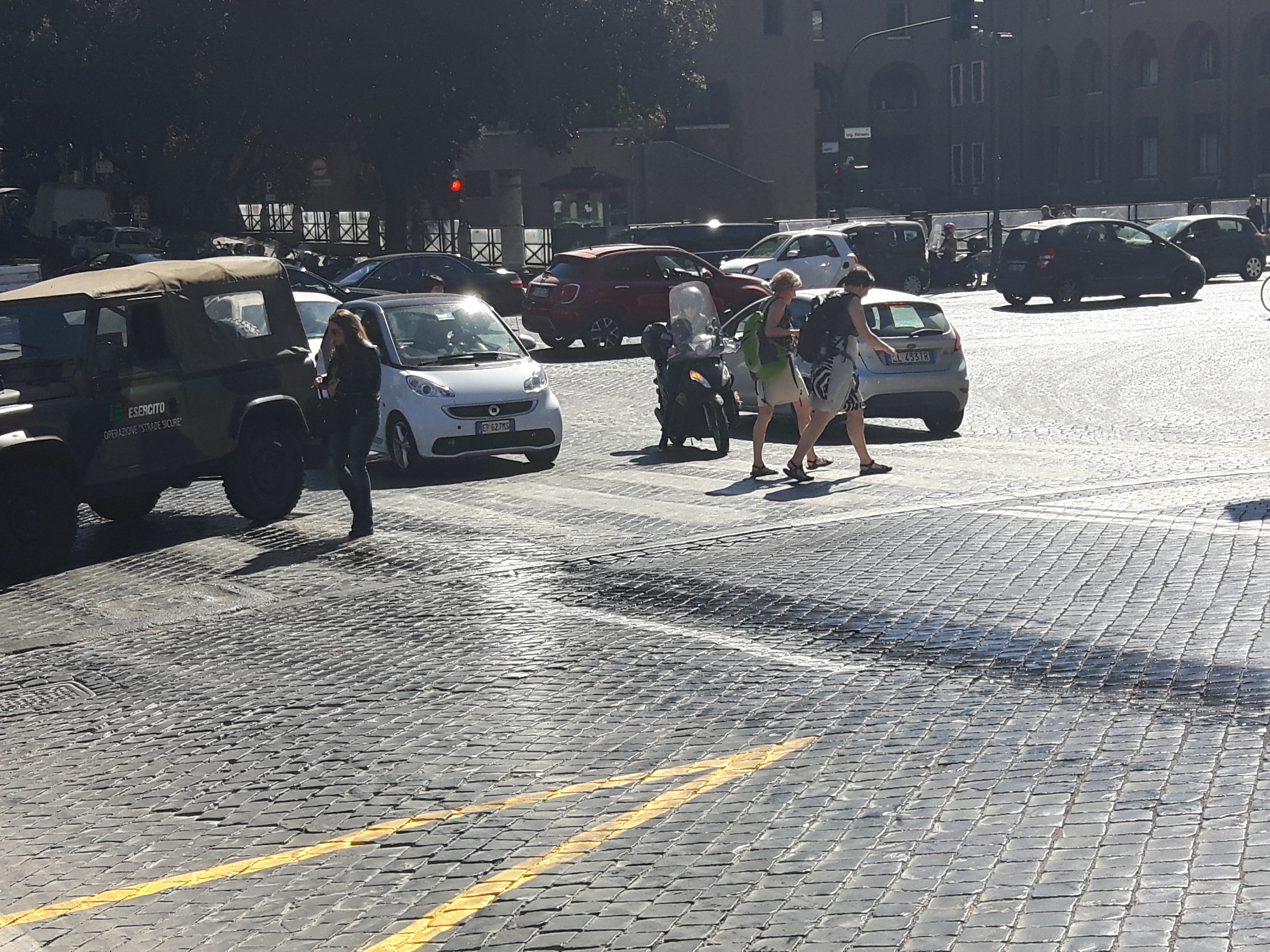 Oltre agli scooter, a terra sono finiti decine di pedoni tra cui una donna incinta. La chiazza è fuoriuscita prima delle 10,00: le persone presenti ed anche una jeep dei militari hanno provato a far rallentare gli scooter in transito. Testimoni oculari raccontano di almeno 6 mezzi a due ruote finiti a terra. La polizia municipale e i carabinieri, verso le 10,20 hanno cominciato a bloccare la strada ed hanno ascoltato le persone infortunate prendendo i loro nominativi utili per le eventuali denunce. Gli addetti sul posto sono molti, compresi quelli dell’Atac che cercano di pulire la lunghissima scia. Inevitabile il caos che si è formato, con lunghe code e traffico rallentato in una parte molto estesa del centro della città.