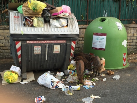 ROMA – A via Cortina d’Ampezzo nella zona nord della Capitale, i cumuli di rifiuti accatastati vicino ai cassonetti hanno richiamato dei cinghiali. Come già accaduto con i maiali spuntati sia nel Natale del 2013 e nel febbraio del 2015 in zona Boccea, anche stavolta la notizia della famiglia di quattro cinghiali che pascola tra gli scarti di cibo lasciati per strada è il Messaggero che pubblica delle foto e scrive: