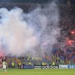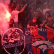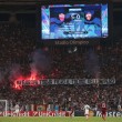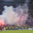Lancio di fumogeno fra il settore dei russi e la Curva Nord (Ansa)