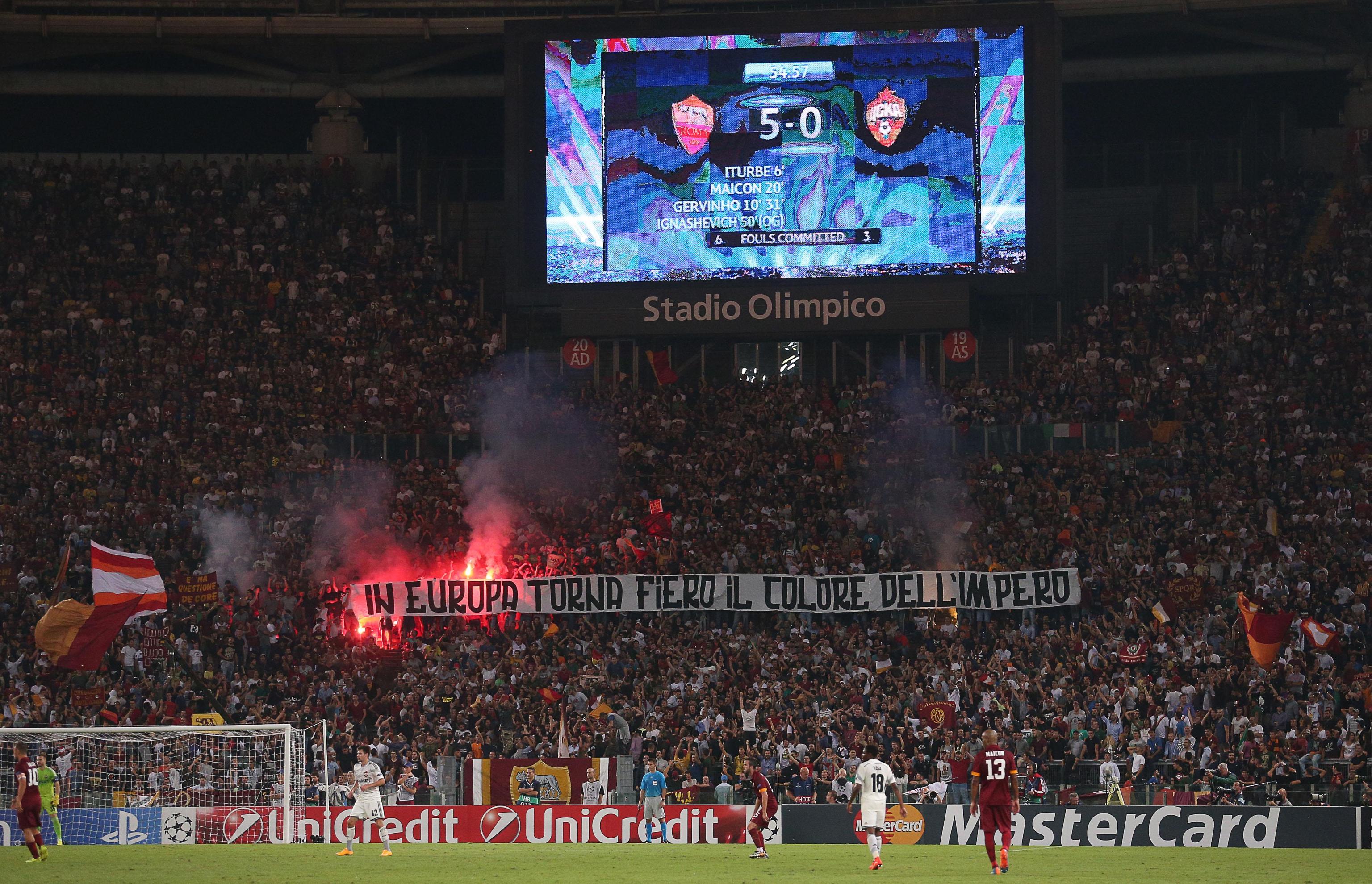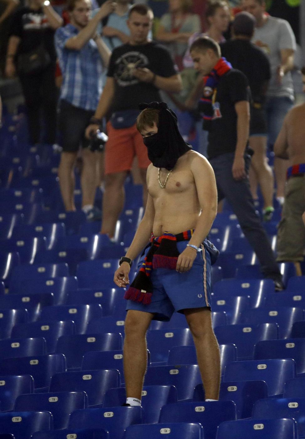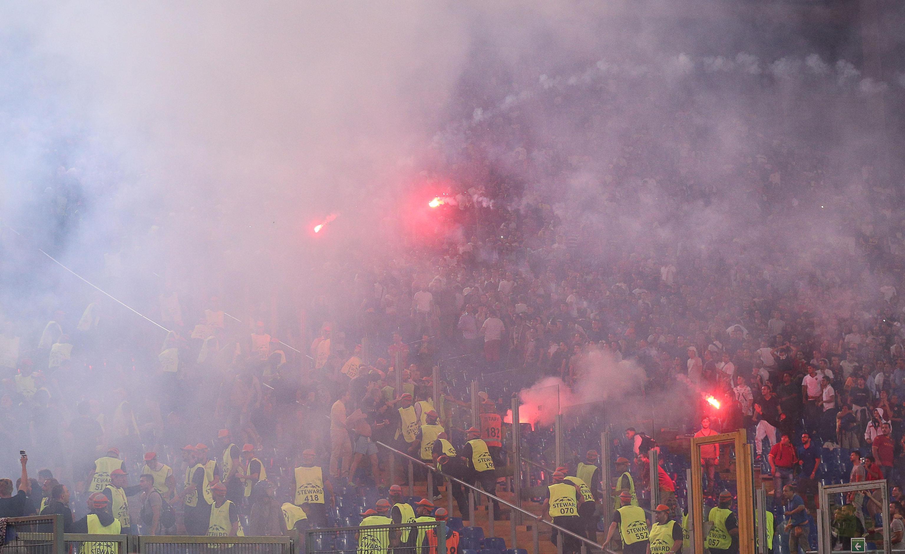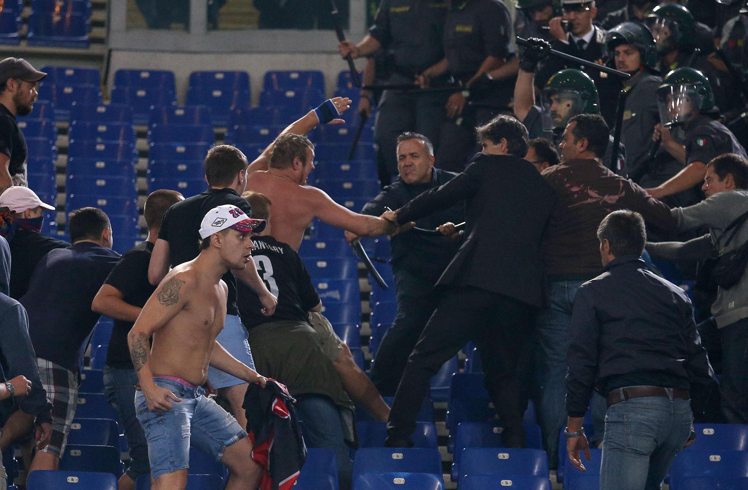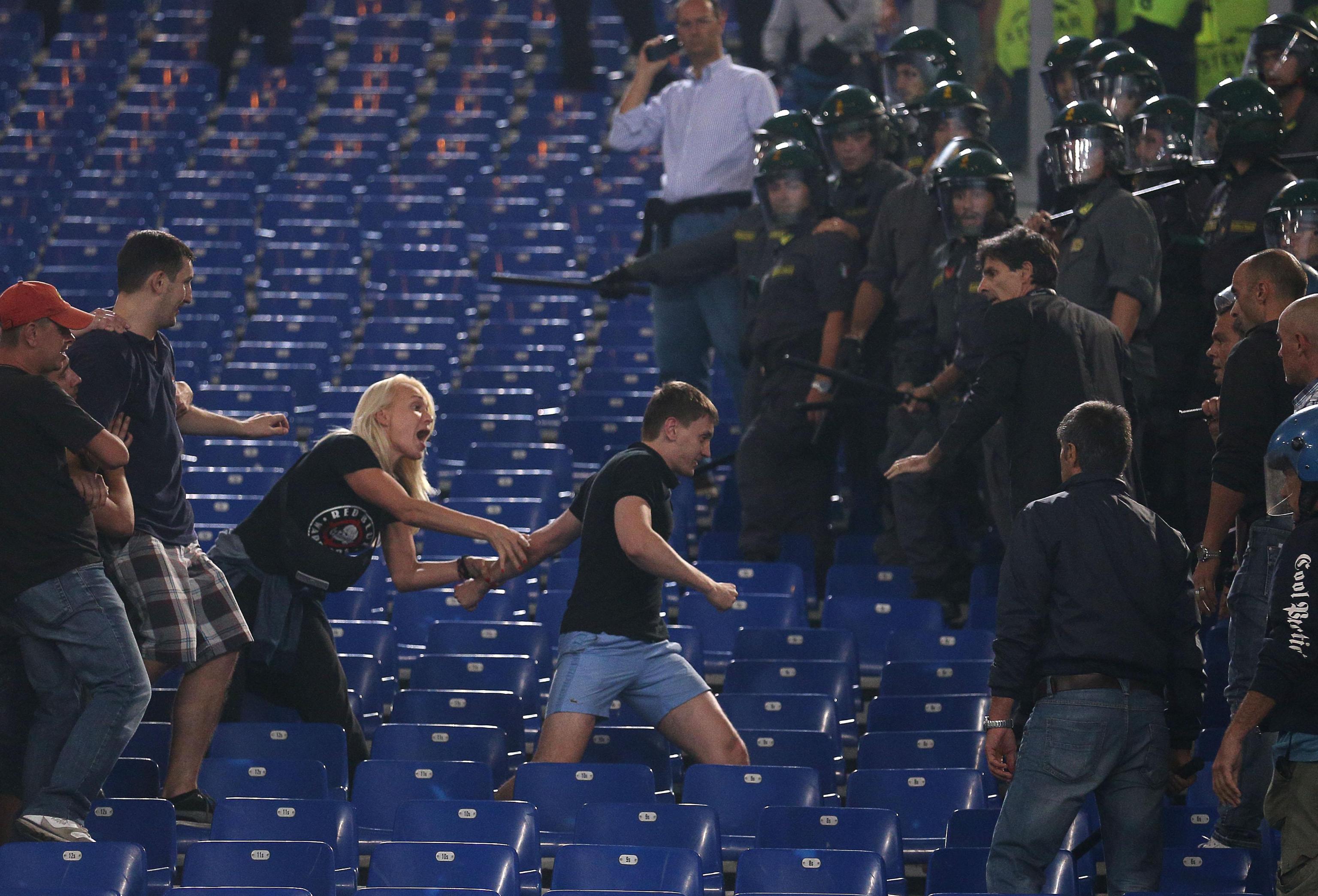 “Alcuni tifosi della squadra russa hanno iniziato dapprima un fitto lancio di fumogeni all’indirizzo dei tifosi romanisti, cercando poi di entrare in contatto con loro: si è reso necessario pertanto arginare l’azione dei tifosi della squadra moscovita con l’intervento degli steward, addetti alla sicurezza all’interno dello stadio”.