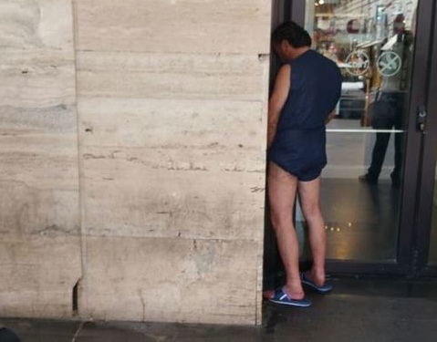ROMA – Un uomo è stato fotografato mentre, incurante dei passanti e dei viaggiatori, si è appartato in un angolo non tanto nascosto della stazione Termini a Roma e ha fatto pipì davanti a tutti e in pieno giorno. Un nuovo esempio di degrado che si registra nella Capitale e che si aggiunge alla lista di senzatetto e turisti scostumati che non si preoccupano di spogliarsi per le strade della città, lasciarsi andare in atti osceni e lavarsi vicino alle fontane come fossero nella riservatezza del bagno della propria casa.