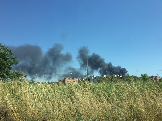 Roma, fiamme sulla Pontina: a fuoco un ex campo nomadi (Foto BlitzQuotidiano)