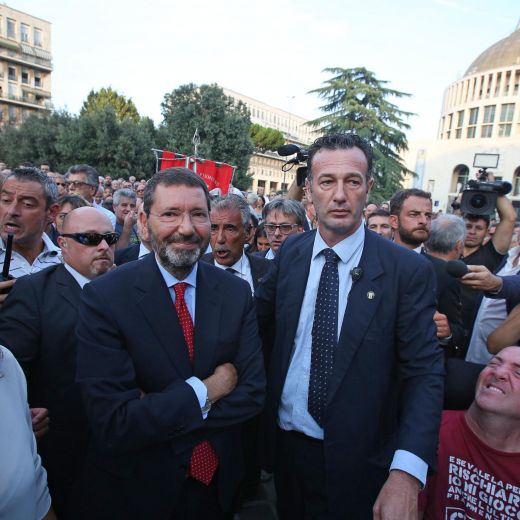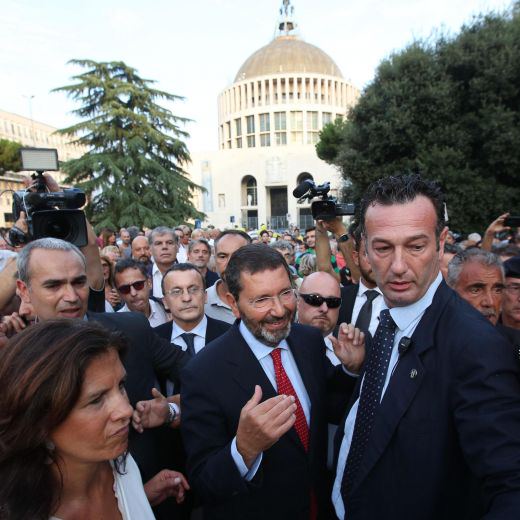 “La presenza delle persone in questa piazza dimostra che Roma è una città antifascista, antinazista e antimafia: abbiamo cacciato i fascisti e i nazisti, ora cacceremo anche la mafia”, ha detto il sindaco di Roma, travolto dalle polemiche degli ultimi mesi.