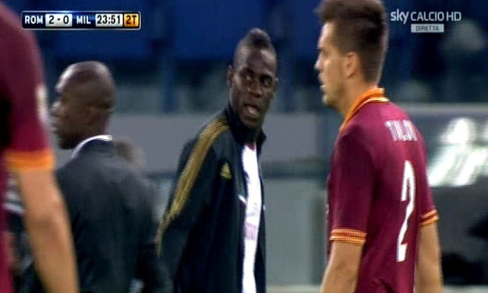 Roma-Milan, Balotelli non accetta sostituzione: smorfia a Seedorf (foto da immagini televisive).