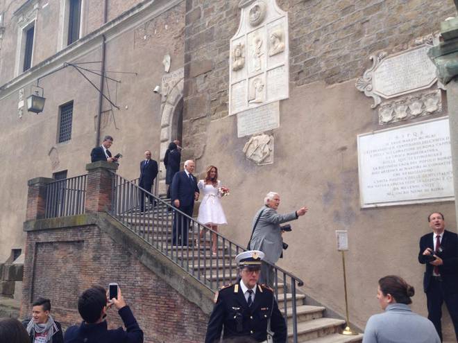 ROMA – Paolo Cirino Pomicino e Lucia Marotti si sono sposati in Campidoglio, a Roma, il 12 aprile. Cirino Pomicino, detto “o ministro” si è “accasato” all’età di 74 anni con la sua fidanzata storica. Testimone d’eccezione per “o ministro”, che si sposa dopo 13 anni di fidanzamento, è  l’ex ministro degli esteri Gianni de Michelis, già collega di governo durante gli ultimi due esecutivi Andreotti, dal 1989 al 1992.