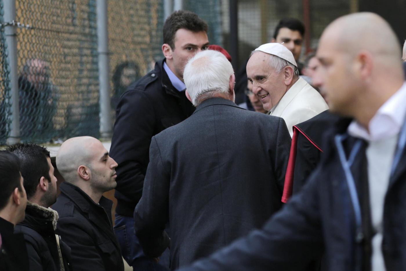 Arrivando a Pietralata, prima di raggiungere la parrocchia di San Michele Arcangelo, Papa Francesco ha deciso a sorpresa una sosta in un campo profughi che si trova a 300 metri dalla chiesa. Nessuno sapeva di questa visita e il cardinale Vallini e altri prelati erano in attesa del Pontefice davanti alla sagrestia della chiesa, un po’ preoccupati perché non c’era con loro il parroco, don Aristide Sana, che hanno fatto cercare con l’altoparlante. Il sacerdote era invece con il Papa in mezzo ai profughi, che lo hanno molto festeggiato.