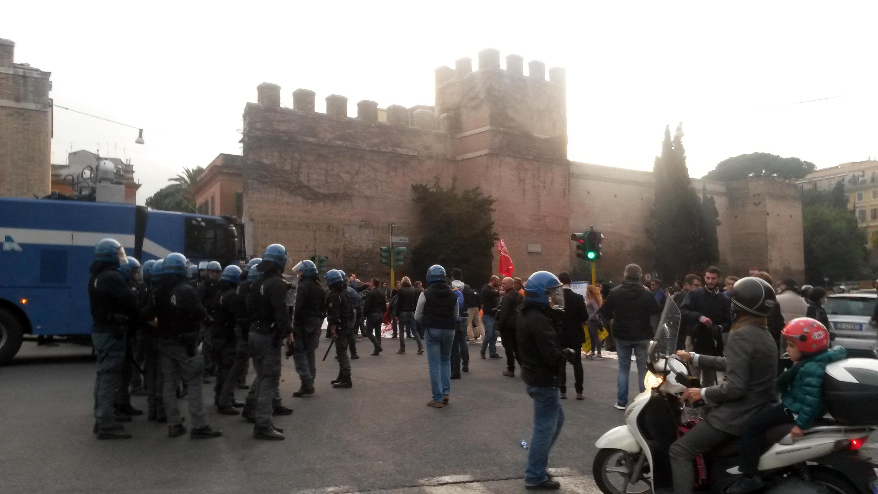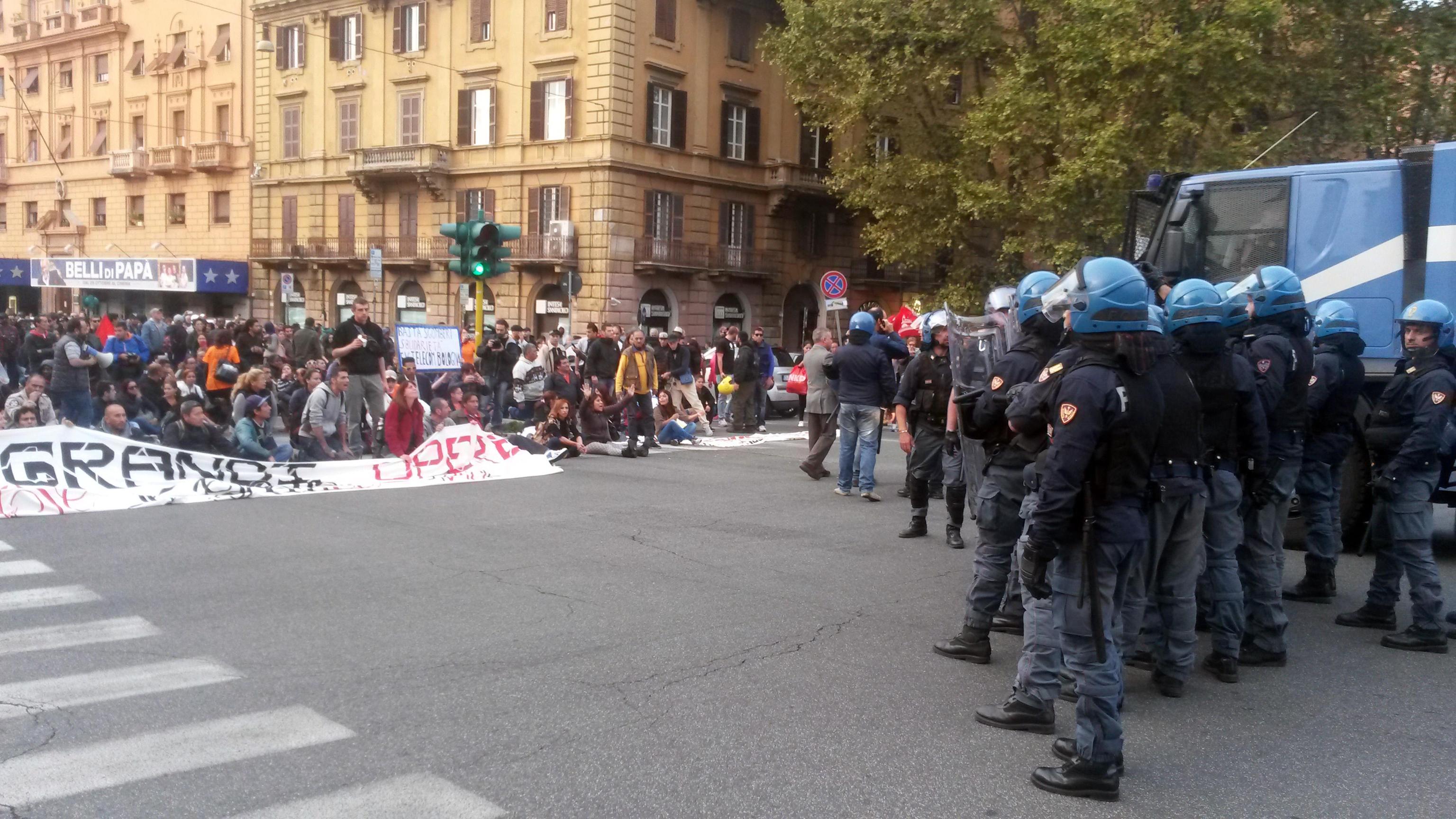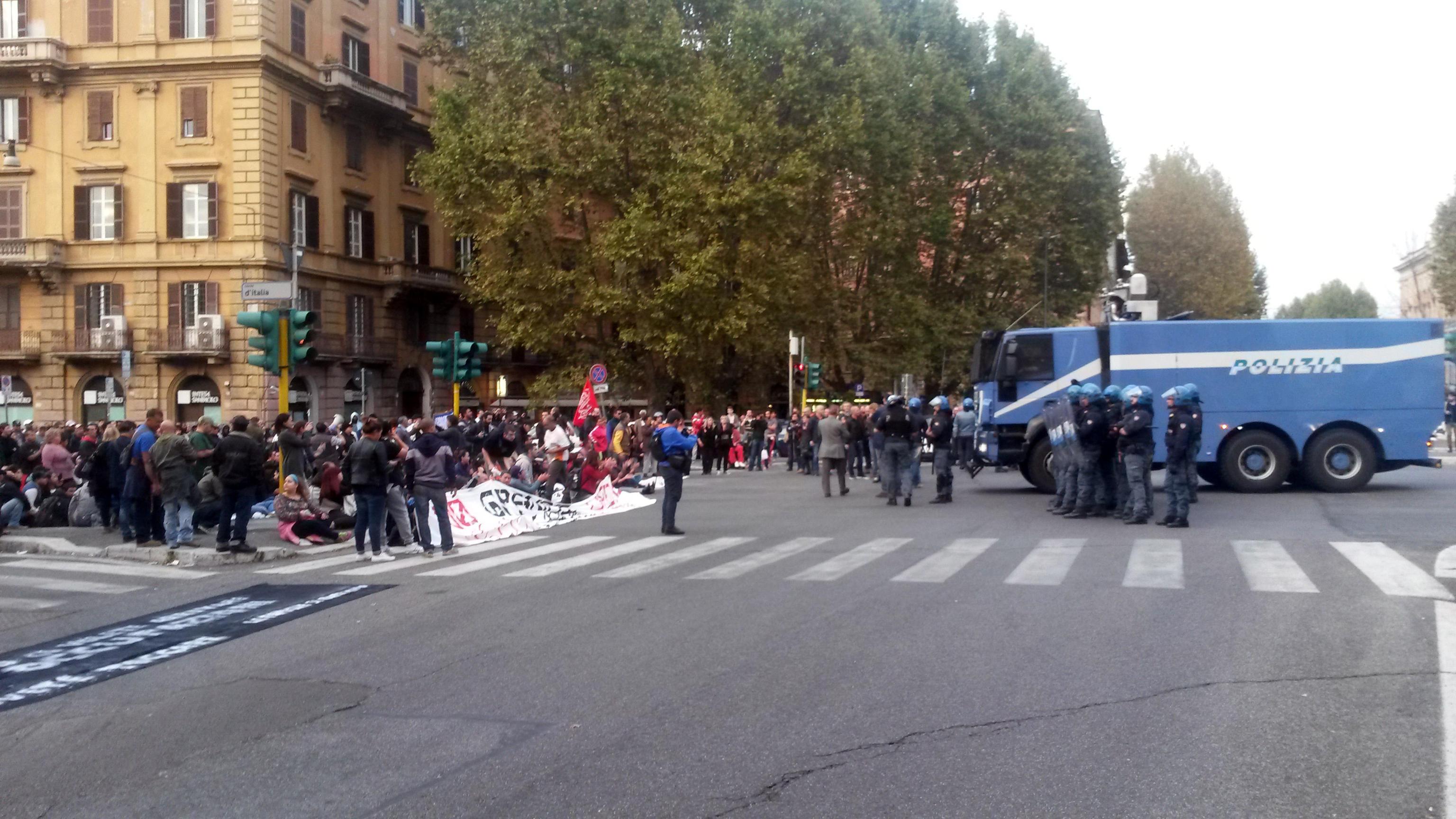 ROMA – Manifestazione a Roma in solidarietà agli occupanti dello stabile dell’ex Telecom sgomberati a Bologna. Momenti di tensione ci sono stati quando i manifestanti hanno bloccato il traffico a Porta Pia, nei pressi del Ministero delle Infrastrutture.