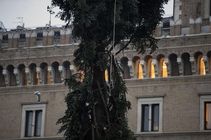ROMA – “È arrivato a Roma l’abete che diventerà l’albero di Natale di piazza Venezia (già ribattezzato “Spelacchio” come il suo predecessore del 2017, ndr) in occasione delle festività 2018-2019.