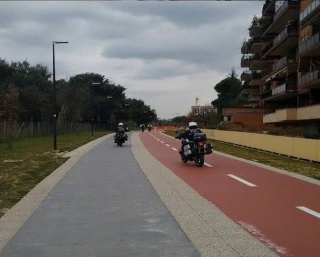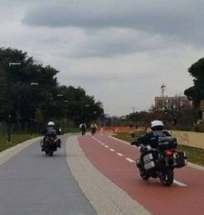 ROMA – Due agenti della polizia municipale di Roma Capitale sfrecciano con le loro potenti moto su una delle (poche) piste ciclabili della città. Le foto scattate sulla ciclopedonale che collega Monte Ciocci a Santa Maria della Pietà nel quartiere Monte Mario sono state scattate da alcuni cittadini sbigottiti la mattina di sabato 21 febbraio e le foto sono subito sui social. Mario Avarello è uno dei cittadini che ha visto passare le moto sulla ciclabile. Sul web, Avarello ha commentato la scena spiegando ch lui e gli altri cittadini erano “increduli, tanto che eravamo convinti che quel rumore di motociclette venisse dalla strada”.