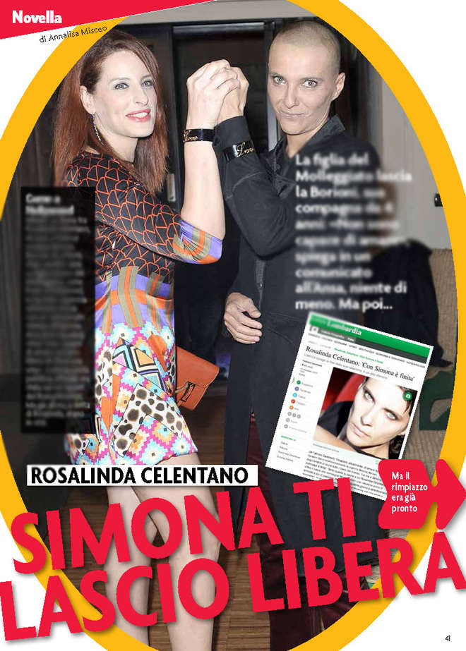 MILANO – Rosalinda Celentano aveva annunciato all’Ansa di aver lasciato la sua fidanzata Simona Borioni dopo 4 anni, “perché incapace di amare”.