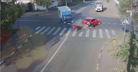 LJUBERCY (RUSSIA) – In un incrocio della città russa di Ljubercy, le telecamere di sorveglianza hanno documentato la fortuna di un ragazzo che è scampato incredibilmente alla morte mentre era bordo della sua bicicletta.