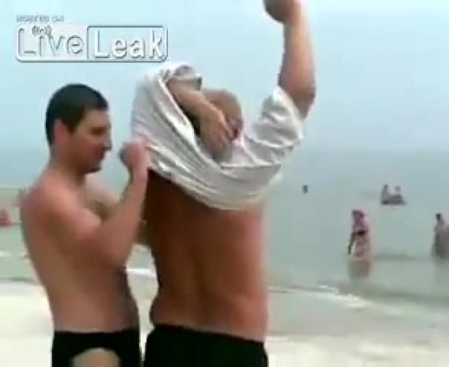 ROMA – Questo video è stato girato tre anni fa su una spiaggia e mostra un turista russo ubriaco che tenta per diversi minuti di rivestirsi, scambiando però un paio di pantaloni per una giacca.