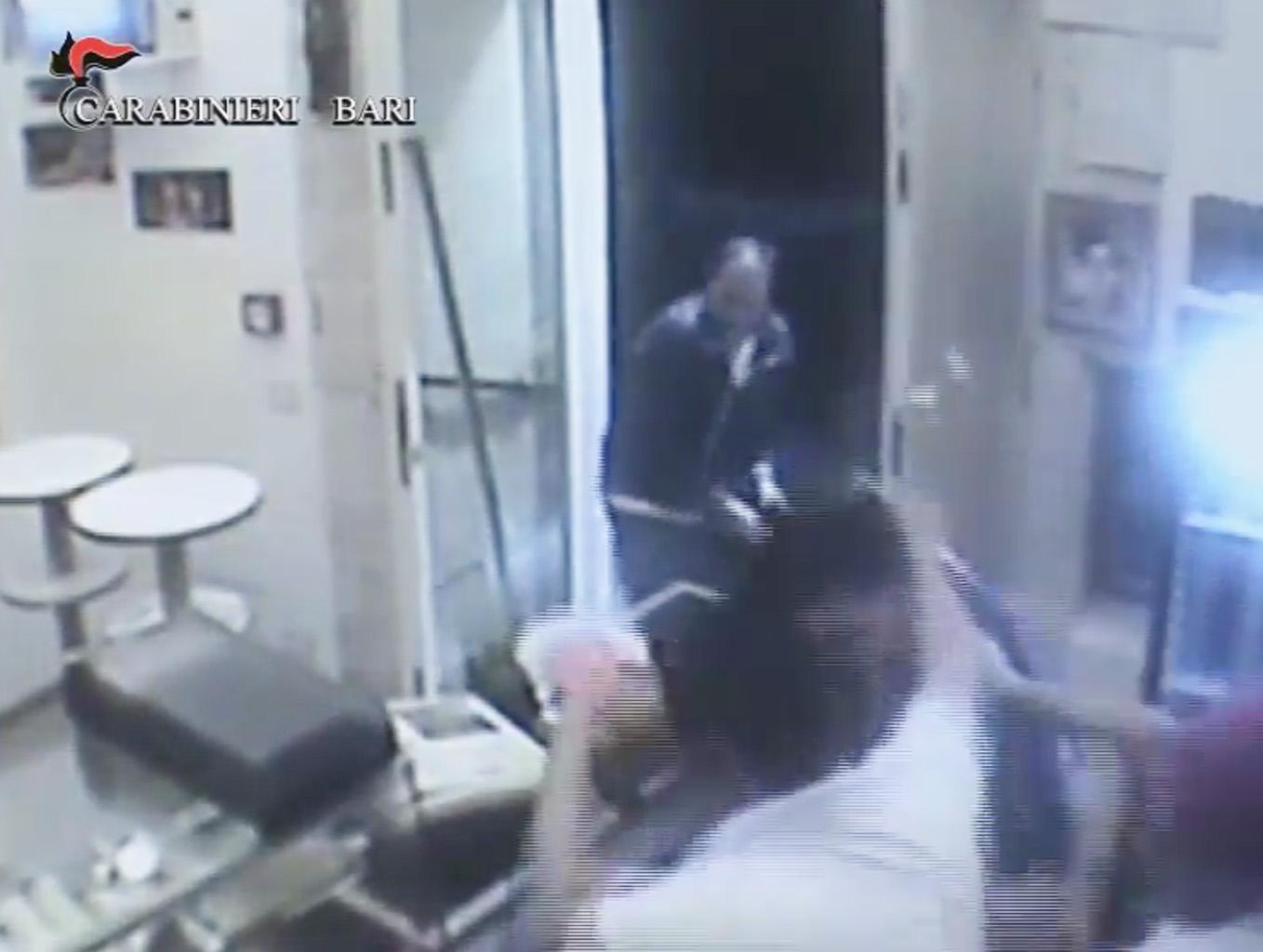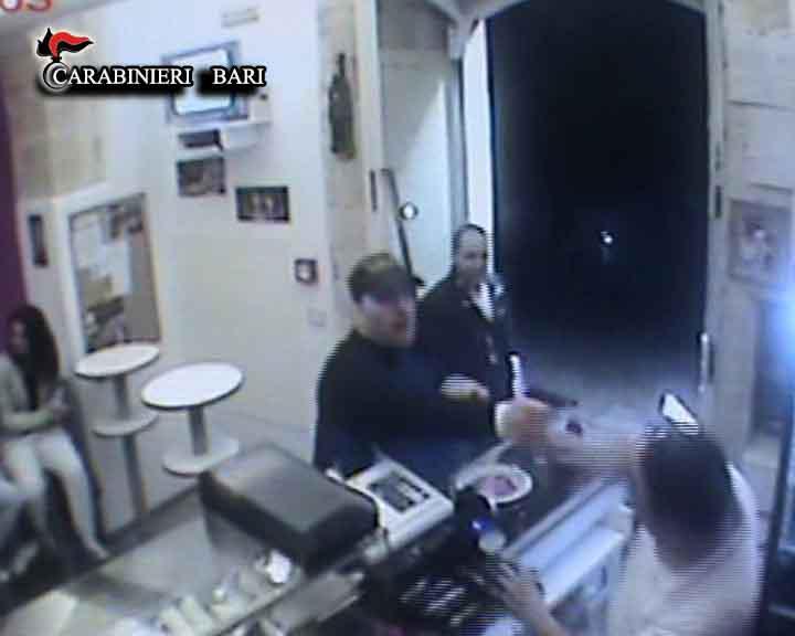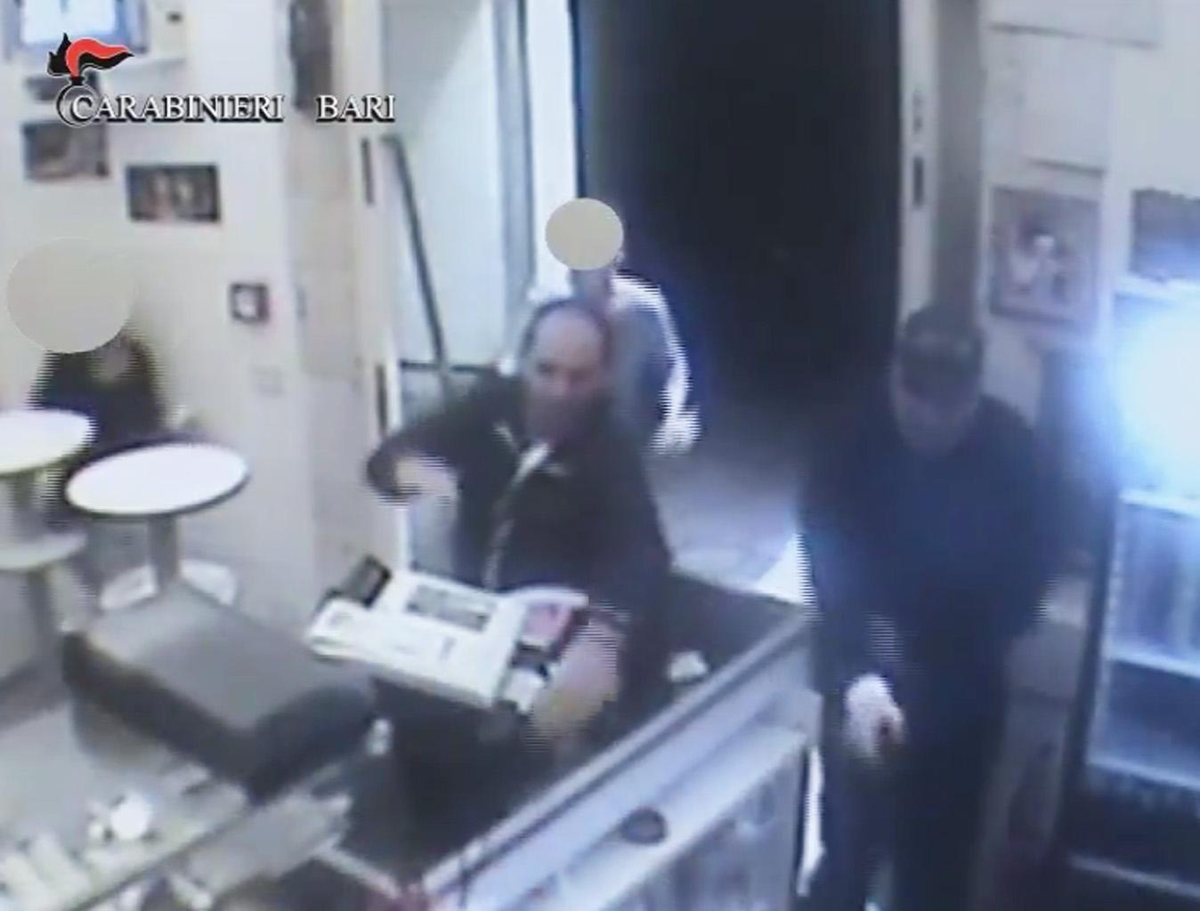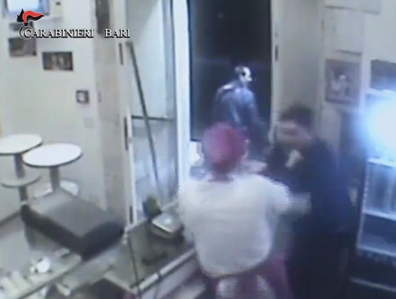 BARI – Ha puntato la pistola al volto di un dipendente di una pizzeria durante una rapina tentando più volte di fare fuoco, ma l’arma si è inceppata e poco dopo il rapinatore è stato arrestato dai carabinieri assieme ad un complice. E’ accaduto a Ruvo di Puglia (Bari). La sequenza è stata ripresa dal circuito di videosorveglianza della pizzeria. Gli arrestati sono Francesco Cipriani, di 36 anni, che era già agli arresti domiciliari, e Vittorio De Lia, di 37 anni, entrambi di Terlizzi.