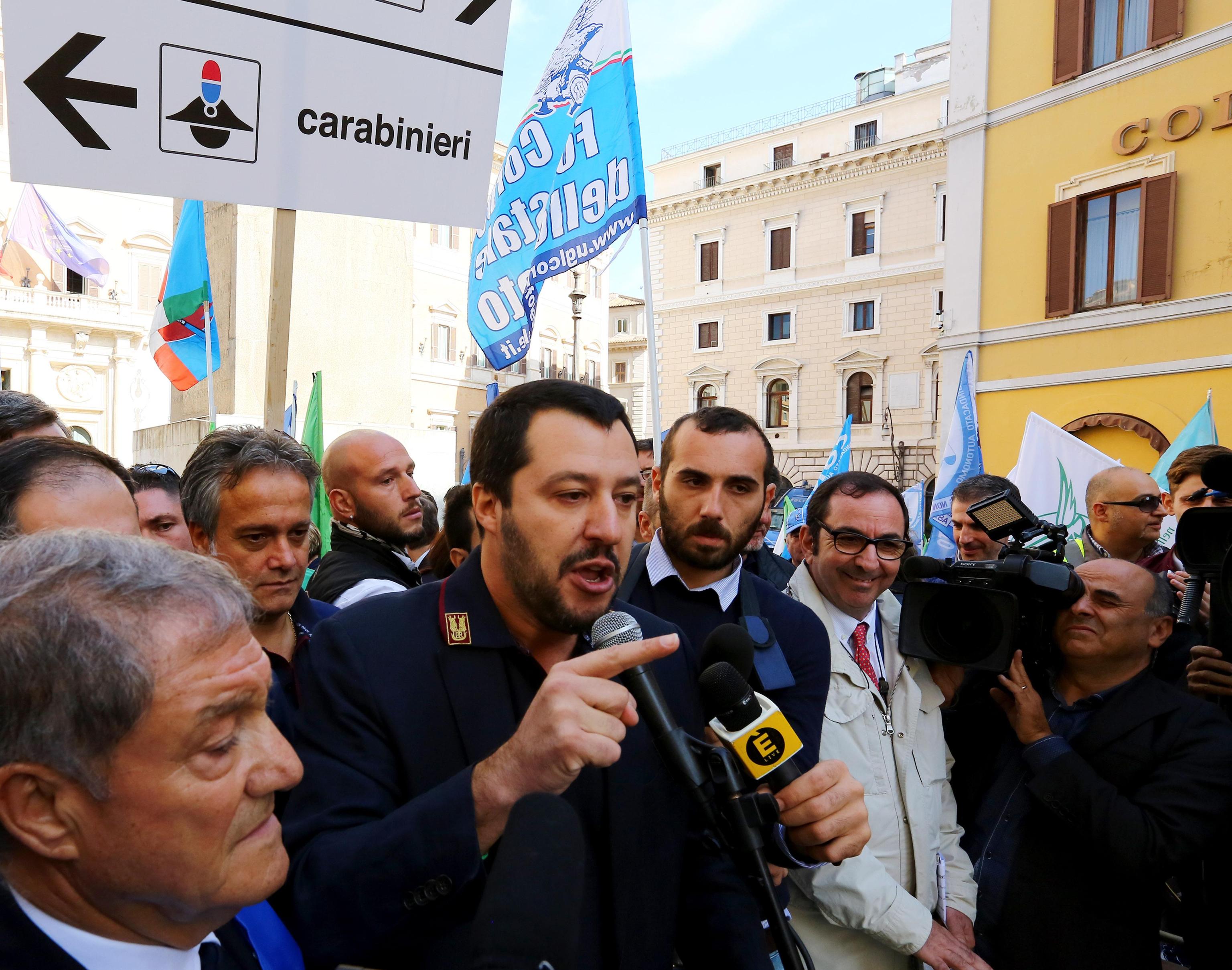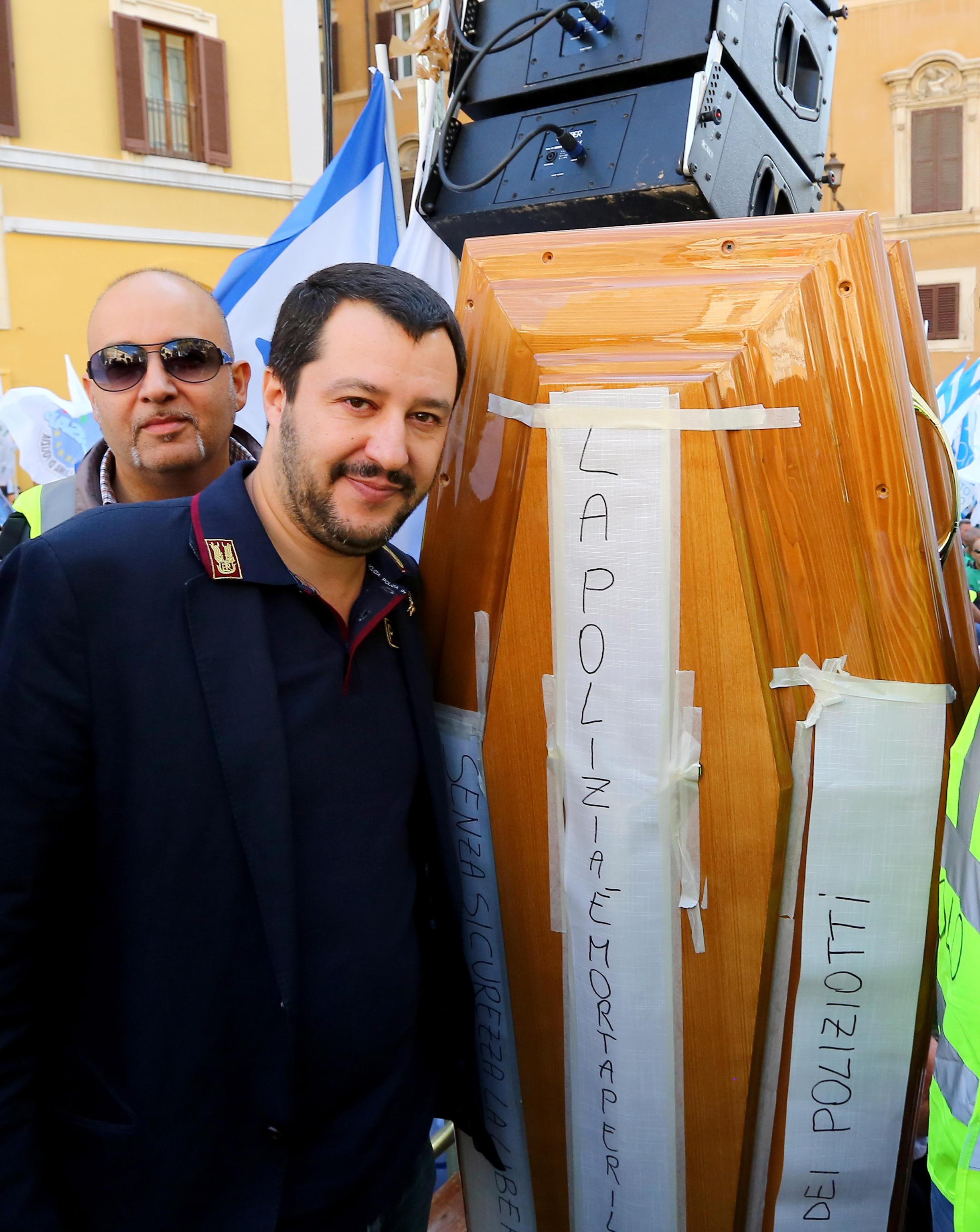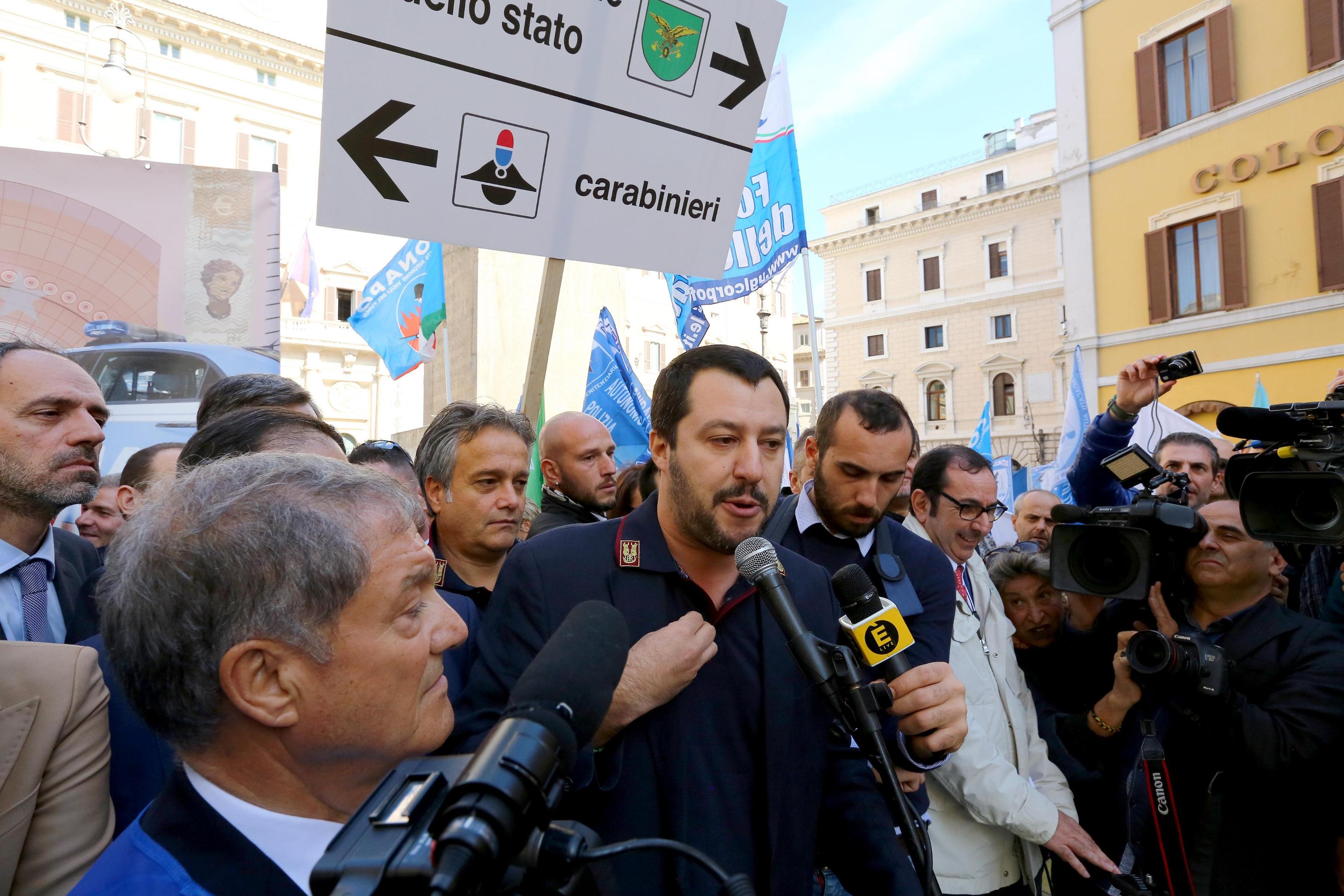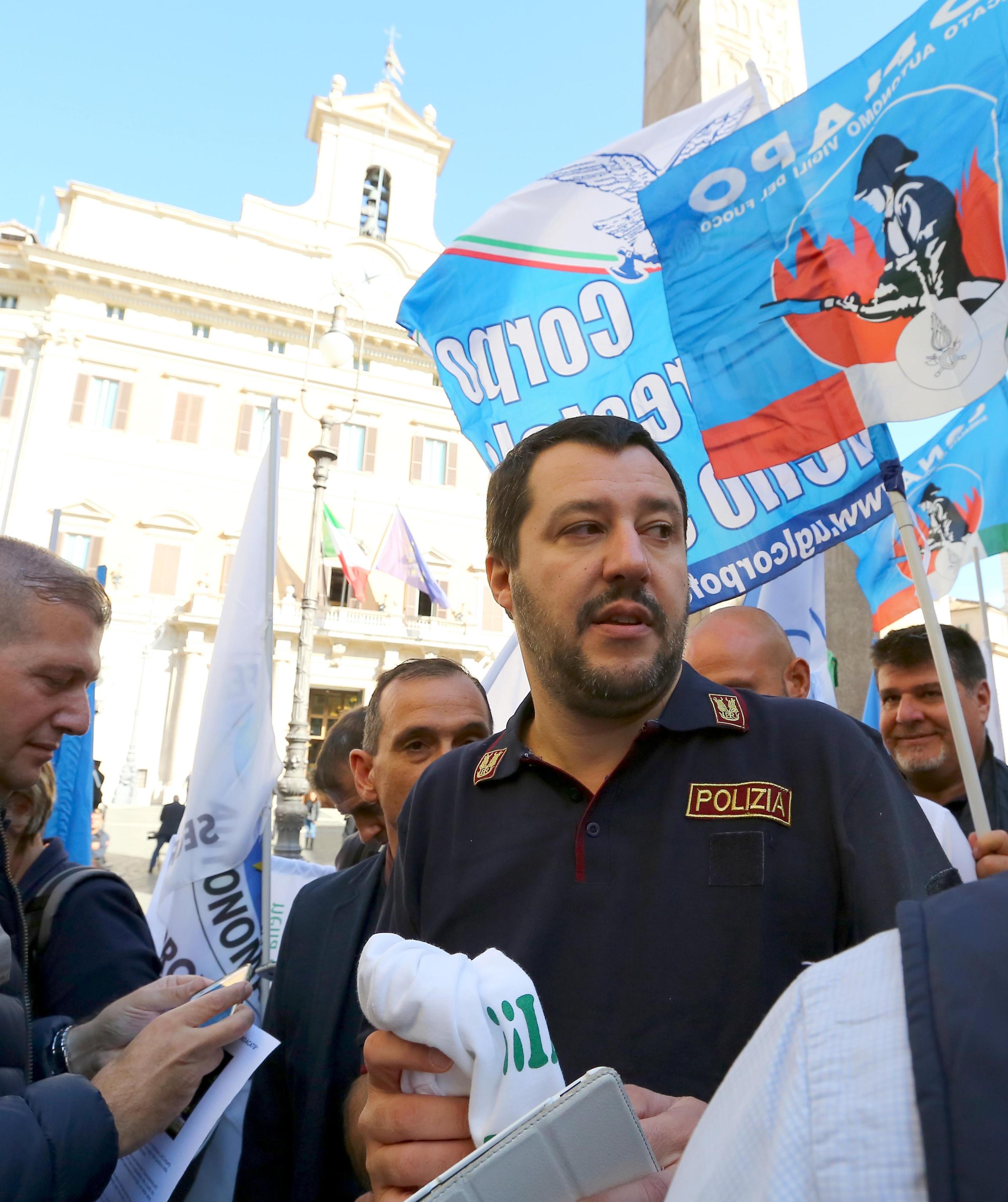 “Abbiamo rapito Roma!”. Esultano così i circa mille poliziotti che hanno protestato mentre in aula si festeggiava il sessantesimo anniversario dell’adesione italiana all’Onu. I fischi, le urla e gli slogan dei poliziotti arrivavano fin dentro la Camera. “In piazza con migliaia di poliziotti, carabinieri, vigili del fuoco: per loro soldi non ci sono, per clandestini sì”, ha scritto poi su Twitter Salvini che ha sempre manifestato la sua vicinanza alle forze dell’ordine opponendosi al reato di tortura al reato di eccesso colposo di legittima difesa. Parlando ai poliziotti, Salvini aveva spiegato che “bisogna riportare in italia ordine, disciplina e rispetto. Se per insegnare questi valori, se per insegnare a rispettare il prossimo, a convivere con il prossimo, bisogna ipotizzare di reintrodurre il servizio civile o militare obbligatorio allora facciamolo”.