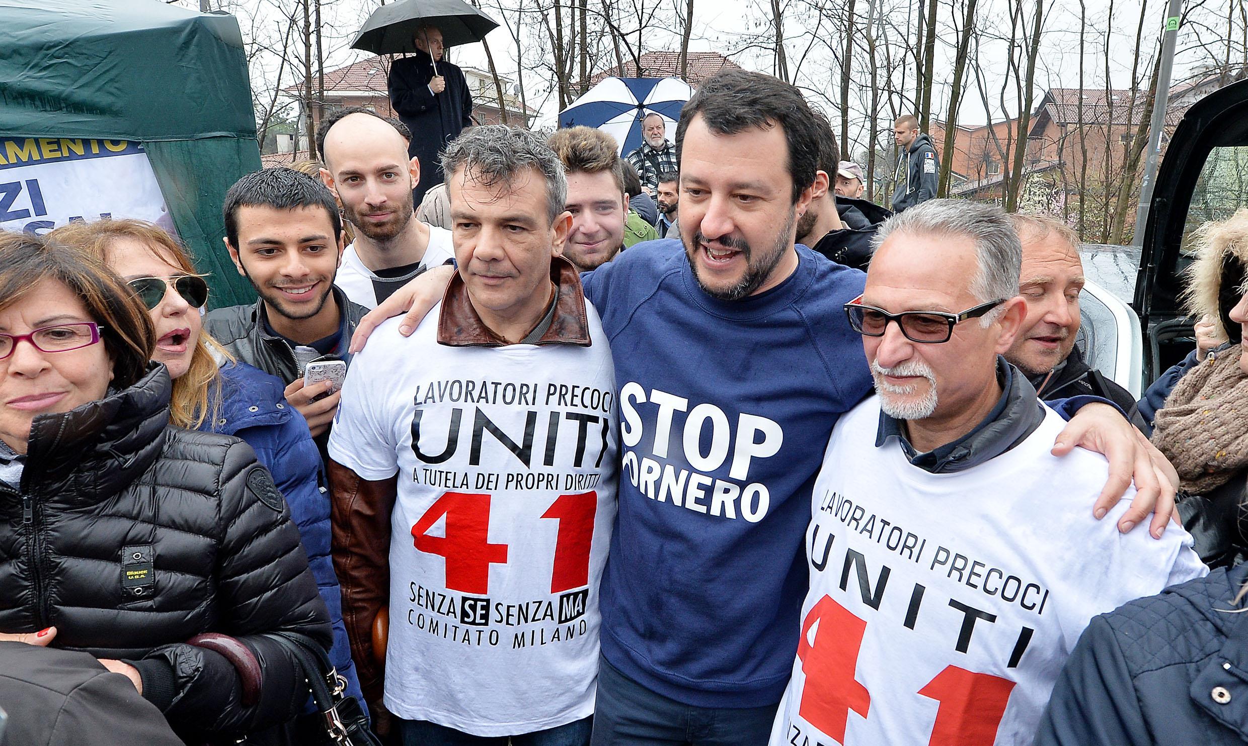 SAN CARLO CANAVESE (TORINO) – Si è presentato in felpa blu, con la scritta ‘Stop Fornero‘, per ribadire il proprio no contro una “legge infame, che sta rubando il futuro ai giovani costretti a scappare se vogliono lavorare”. Così il segretario federale della Lega Nord, Matteo Salvini, si è presentato questa mattina a San Carlo Canavese, paese natale dell’ex ministro Fornero.