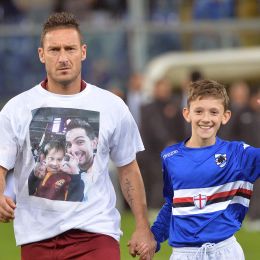 Sampdoria-Roma, calciatori con maglia per Stefano e Cristian De Amicis (FOTO Ansa).