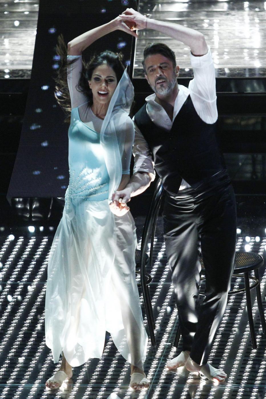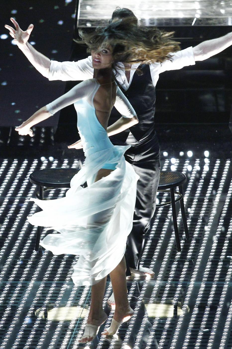 SANREMO – Tutta d’oro vestita, con tanto di strascico, Rocio Munoz Morales illumina il palco dell’Ariston nella seconda serata del Festival di Sanremo. Accompagnata dal ballerino Fabrizio Mainini la bella spagnola si è esibita in un passo a due sulle note di “Lei verrà”, in omaggio al cantante Mango, recentemente scomparso.