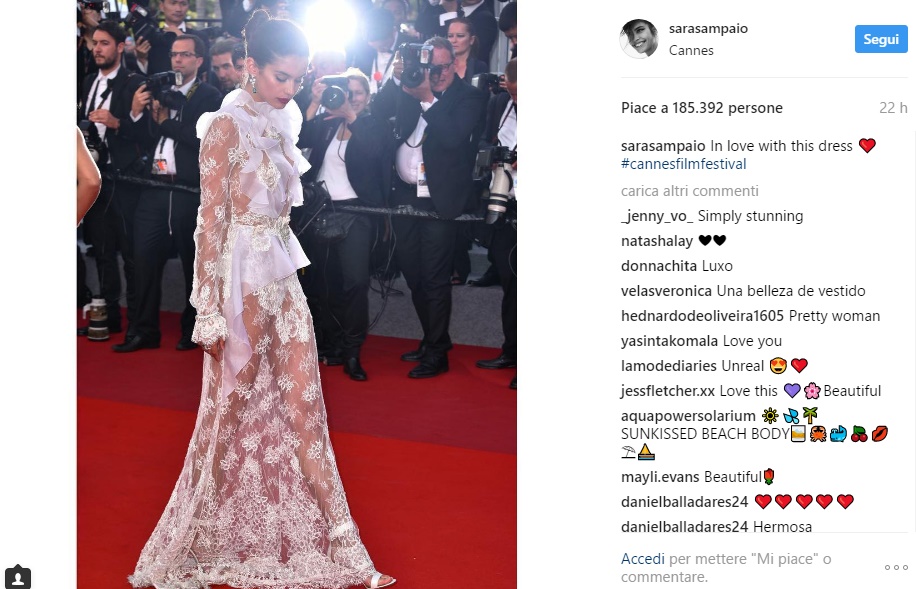 Essendo un angelo di Victoria’s Secret, la Sampaio è abituata a rimanere in lingerie. Nessuno si sarebbe però aspettato che la 25enne scegliesse un look così audace a Cannes. Sul suo profilo Instagram le foto.