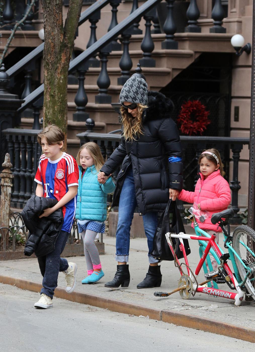 NEW YORK – Sarah Jessica Parker ha festeggiato il 50esimo compleanno in famiglia. L’attrice originaria dell’Ohio conosciuta grazie alla parte di Carrie della fortunatissima serie di “Sex and the city”, è stata fotografata in abiti comodi e scarpe basse, mentre va a mangiare insieme ai suoi tre figli: James di 13 anni e le gemelline Thabita e Marion, nate nel 2009 da una madre surrogata.