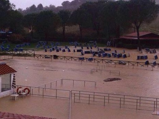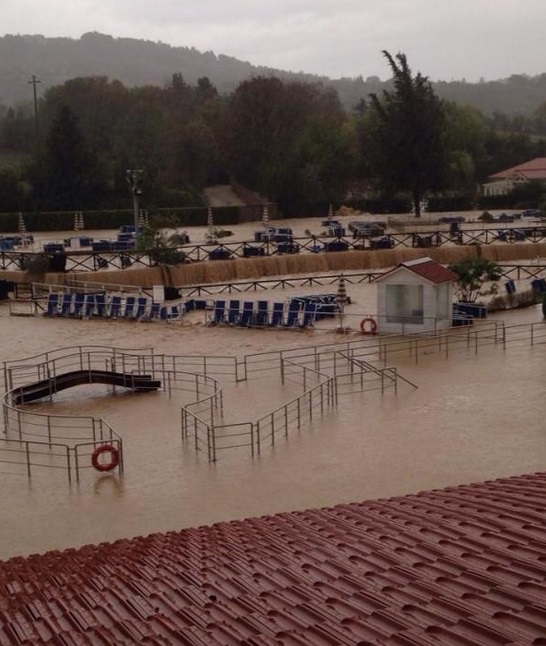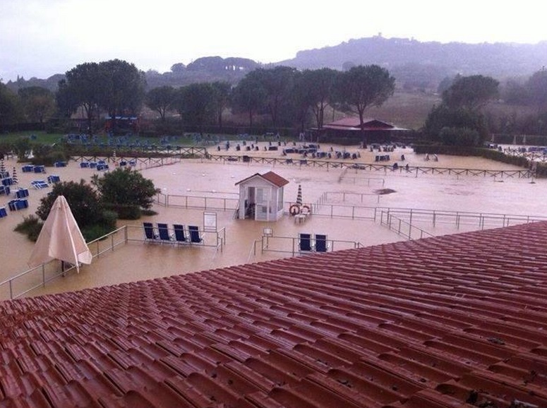 MANCIANO – Le terme di Saturnia coperte dal fango. L’ondata di maltempo in Maremma ha colpito anche la zona delle colline del Fiora. E’ crollato un ponte sul torrente Gattaia presso Saturnia dove le stesse terme sono state invase, comprese le piscine, da detriti di acqua e fango.