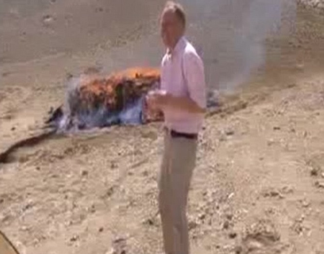 ROMA – In un muogo imprecisato del Medio Oriente bruciano otto tonnellate e mezzo di oppio, eroina e hashish. A documentare quanto sta accadendo c’è anche il corrispondente della Bbc Quentin Sommerville.