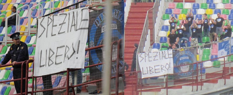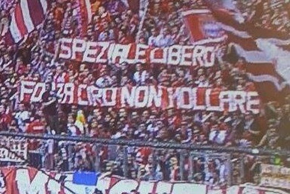 Una “provocazione”, hanno detto gli ultras rossoblù, per favorire la “libertà di espressione” dopo la diffida di Genny ‘a carogna: il capo ultras del Napoli aveva indossato la maglietta “Speziale libero” durante la finale di Coppa Italia. Claudio Scajola è l’ex senatore del Pdl arrestato: il senso della provocazione è “vediamo se ci squalificate se inneggiamo a un altro arrestato”.