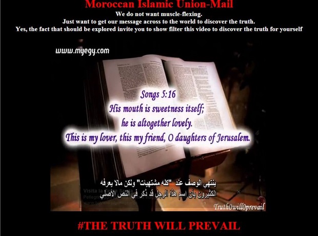 Autori, probabilmente, un gruppo islamico. Visto che il video, non cruento ma di pura e semplice propaganda pro islam, è firmato da Moroccan Islamic Union Mail, una sigla già ritenuta responsabile di diversi hackeraggi.