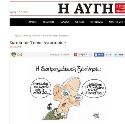 Nei mesi scorsi sono apparse sulla stampa greca (e non solo) diverse caricature e fotomontaggi che accostavano i leader politici tedeschi, in particolare la cancelliera Angela Merkel, al nazismo. Ma anche gli stessi politici ellenici non avevano risparmiato accostamenti totalmente azzardati. Lo stesso neo premier, sottolinea Der Spiegel, aveva parlato di “olocausto sociale”.