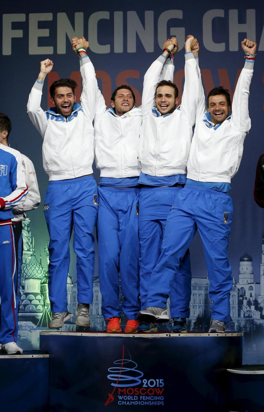 Ad Enrico Berrè viene lasciato il compito di rispondere alle domande in inglese: “gruppo fantastico – dice – e gioia immensa. Sapevamo che non era semplice ma ce l’abbiamo fatto ed abbiamo scritto la storia”. A gioire è tutto lo staff azzurro, a partire dal ct Giovanni Sirovich: “E’ un’emozione che condivido con tutti coloro che lavorano attorno a questi atleti. Da anni eravamo ai vertici senza riuscire mai a cogliere questo successo – sottolinea – E’ arrivato oggi nel migliore dei modi, dimostrando al Mondo il valore di questi ragazzi e dell’intero movimento della sciabola italiana”. Le foto dell’esultanza dei quattro atleti Azzurri (foto LaPresse).