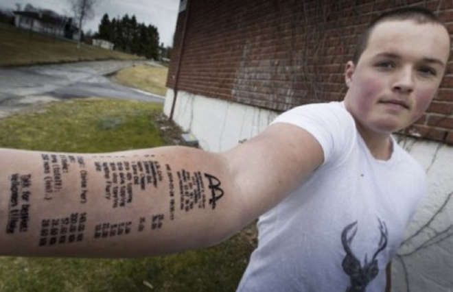 OSLO – Stian Ytterdahl ha 18 anni e vive a Lorenskog in Norvegia. Il ragazzo, come racconta Gawker è diventato famoso per essersi fatto tatuare uno scontrino del McDonald’s sul braccio, a seguito di una scommessa persa.