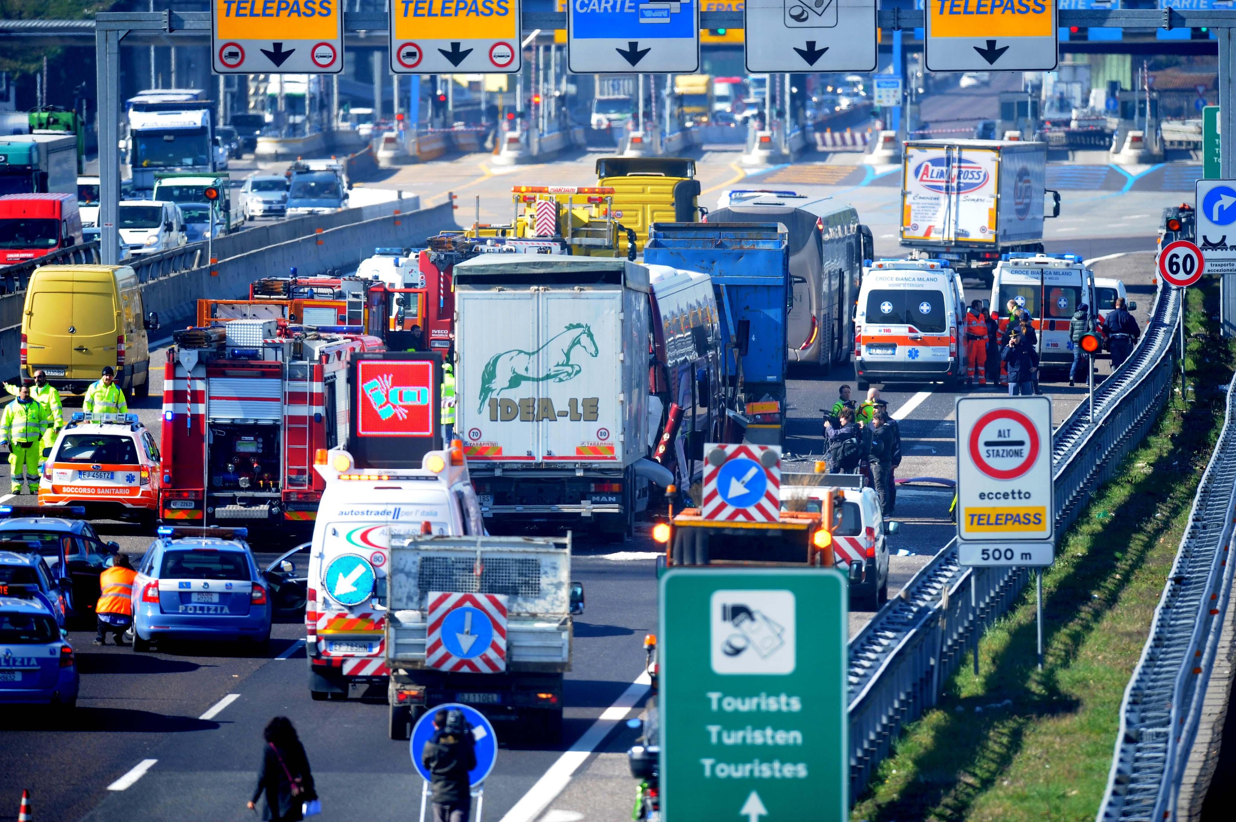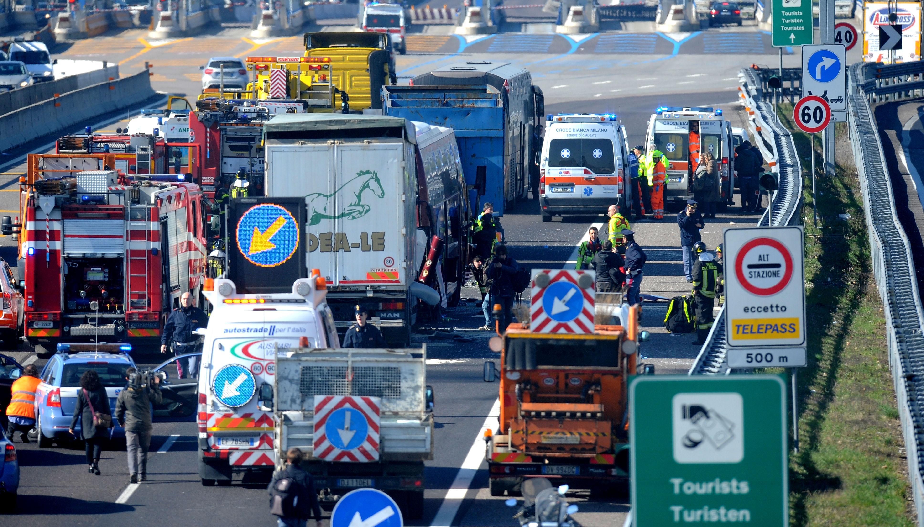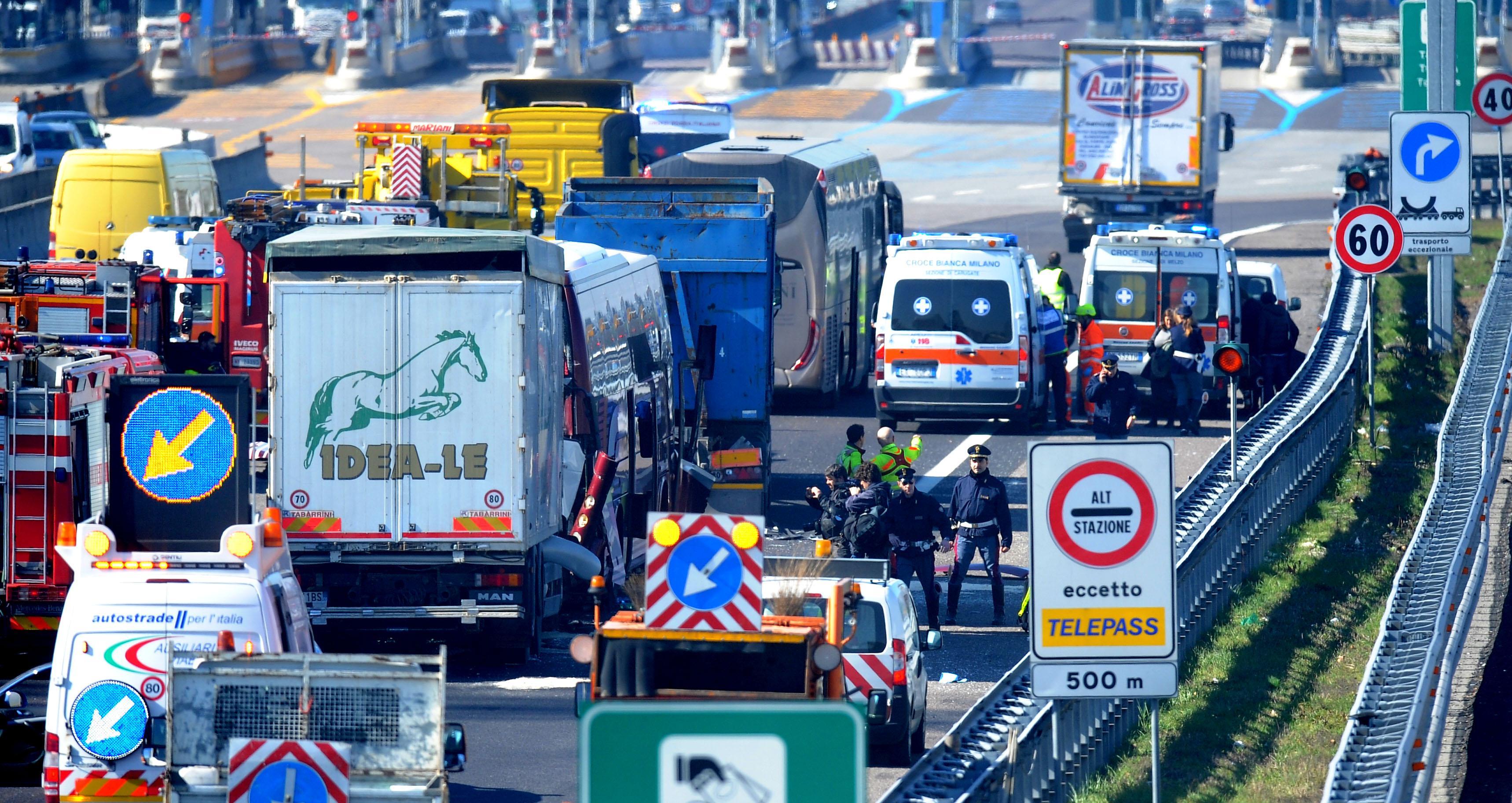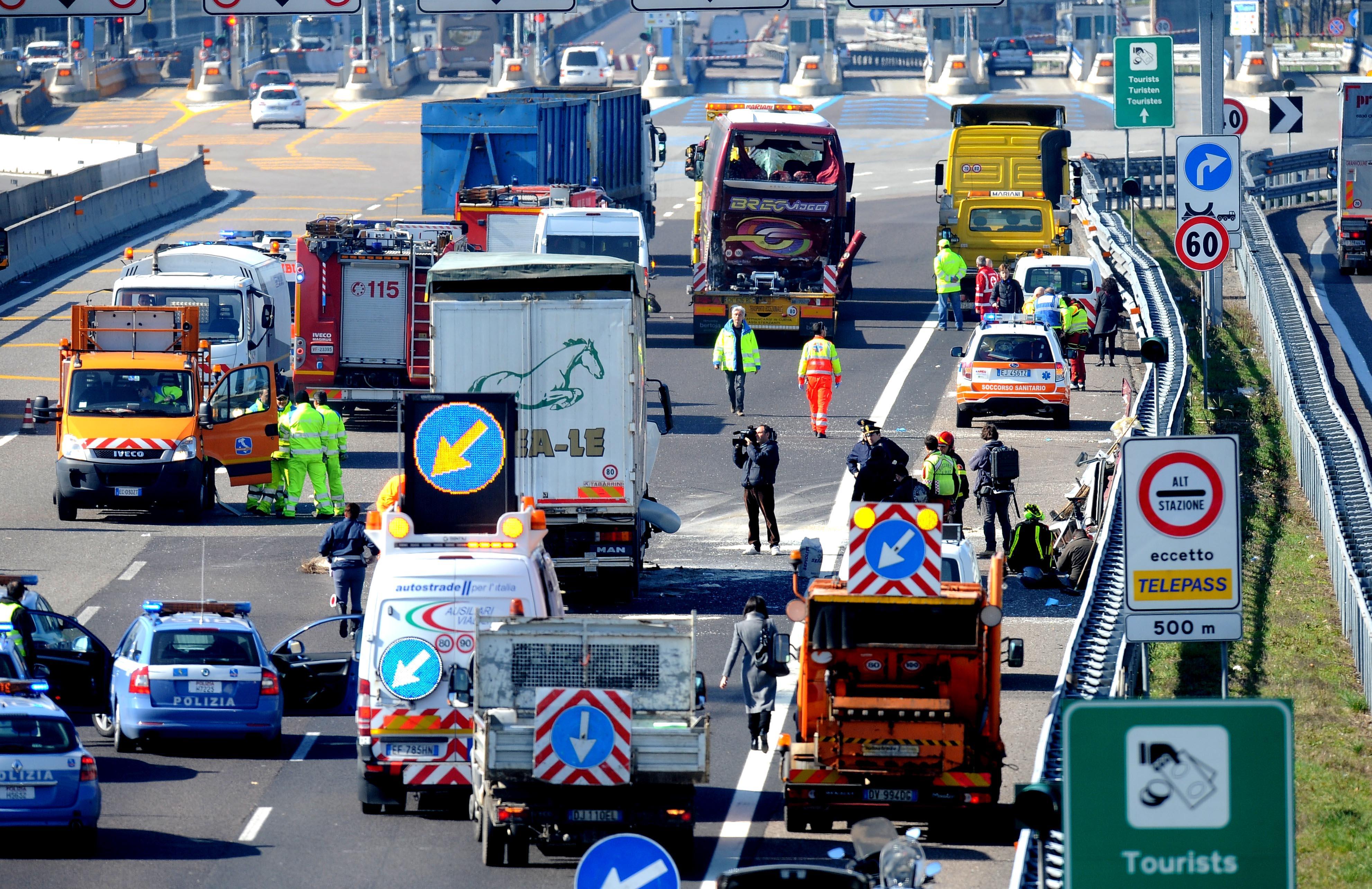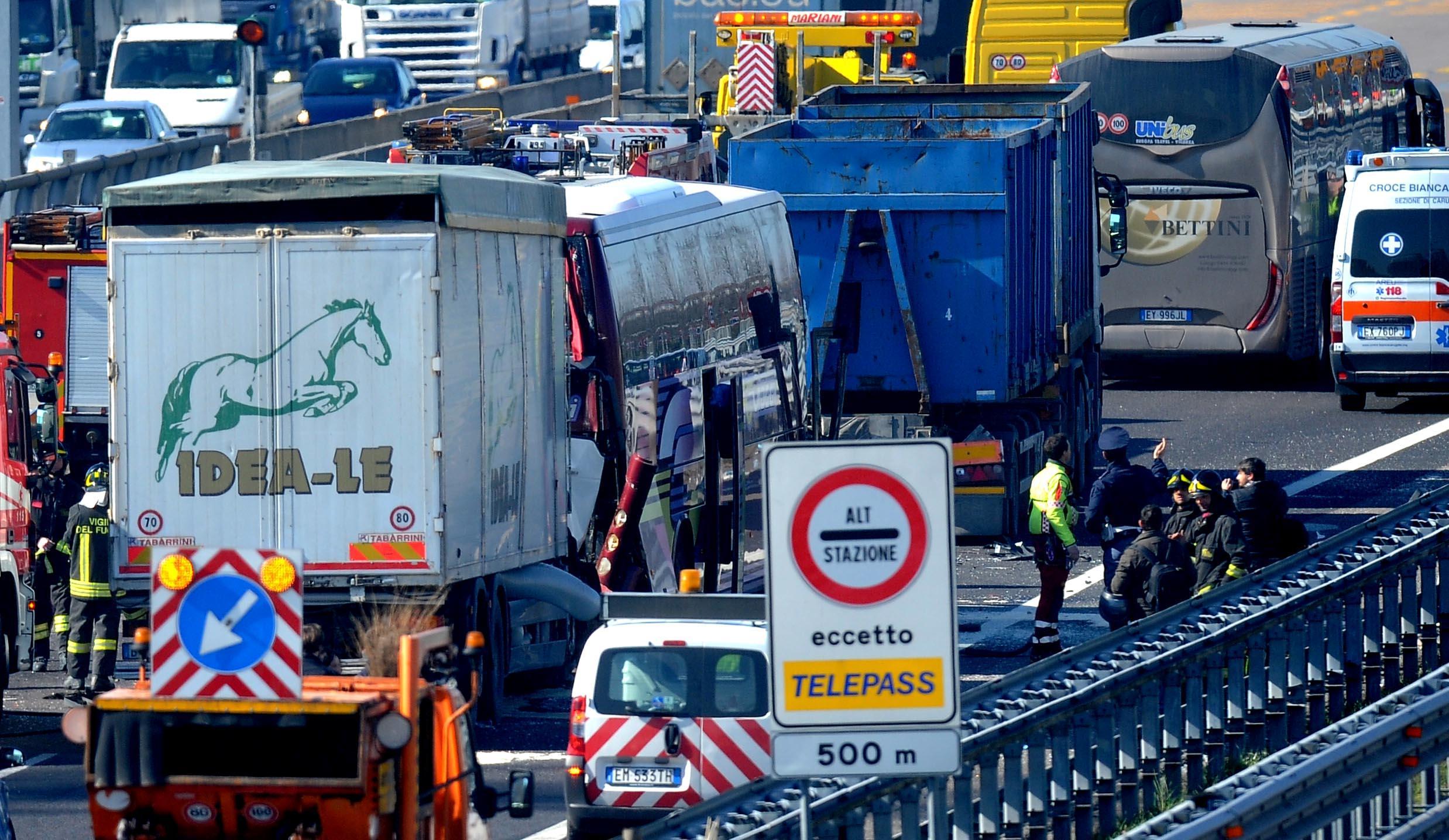 Secondo le prime ricostruzioni il pullman che trasportava gli studenti si è trovato in mezzo a due tir. Uno di questi l’ha tamponato, poco prima che arrivasse alla barriera di Milano Est, e il pullman è quindi andato a urtare un altro mezzo pesante che lo precedeva. Nel doppio urto sono rimasti feriti in modo non grave il conducente dell’autobus e cinque ragazzi, mentre altri 35 sono stati trasportati in ospedale solo per dei “generici controlli”. Solo pochi giorni fa, venerdì 27 febbraio, un incidente analogo era avvenuto sulla A21 all’altezza di Cremona. In quel caso si erano scontrati un camion e il pullman di una scolaresca proveniente da Budapest. Le foto pubblicate dall’Ansa.