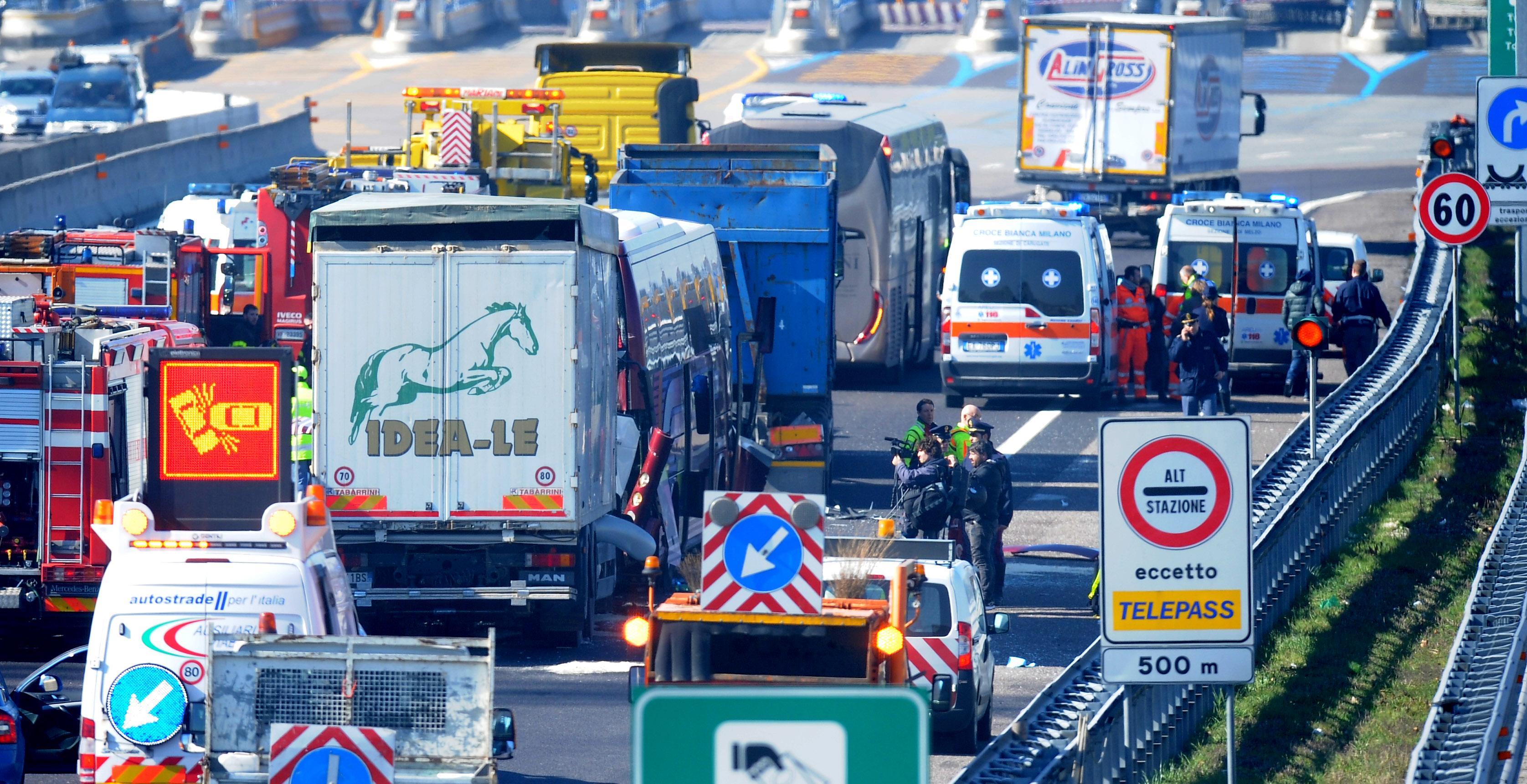 ROMA – Ancora uno scontro in autostrada tra un camion e un pullman di studenti in gita. Questa volta l’incidente è avvenuto sulla A4 in direzione Torino, all’altezza di Milano. Cinquanta le persone coinvolte, tra cui gli oltre 40 studenti dell’Istituto superiore Michele Sanmicheli di Verona. L’incidente si è verificato sull’A4 poco prima della barriera di Milano Est, ad Agrate (Monza). Nello scontro il conducente del camion che ha tamponato il pullman è rimasto incastrato tra le lamiere, ferendosi gravemente. Il 118 ha trasportato 41 persone, 35 in codice verde e 6 in codice giallo, negli ospedali di Monza, al San Raffaele e al Niguarda.