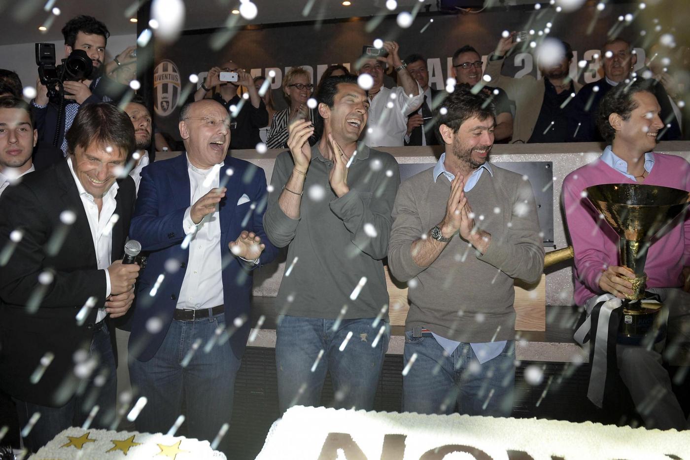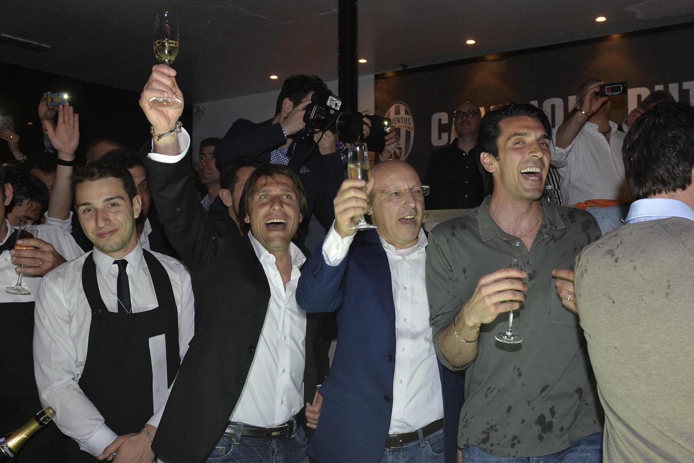 Il popolo juventino si è riversato nel centro con bandiere bianconere e trombe acustiche. C’é anche uno striscione – “Con…te al 102%” – simile a quelli esposti allo stadio in omaggio all’allenatore juventino che nelle prossime ore dovrà sciogliere le riserve sulla sua permanenza a Torino