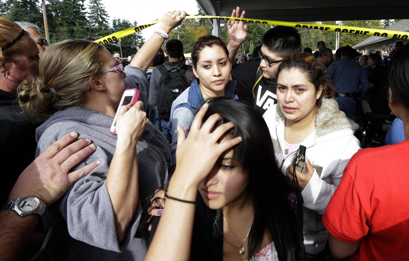 Le immagini trasmesse dalle tv hanno mostrato gli studenti che lasciano la scuola che si trova a 50 chilometri da Seattle. Alcuni sono stati portati in una chiesa vicina; ad altri è stato chiesto dalla polizia di rimanere nelle aule e di bloccare le porte e le finestre. Sul posto sono nel frattempo arrivati i poliziotti e una squadra dell’Fbi che hanno setacciato le classi per controllare che non ci fossero altre persone armate. Ad operazione finita, gli studenti hanno potuto riabbracciare i loro genitori.