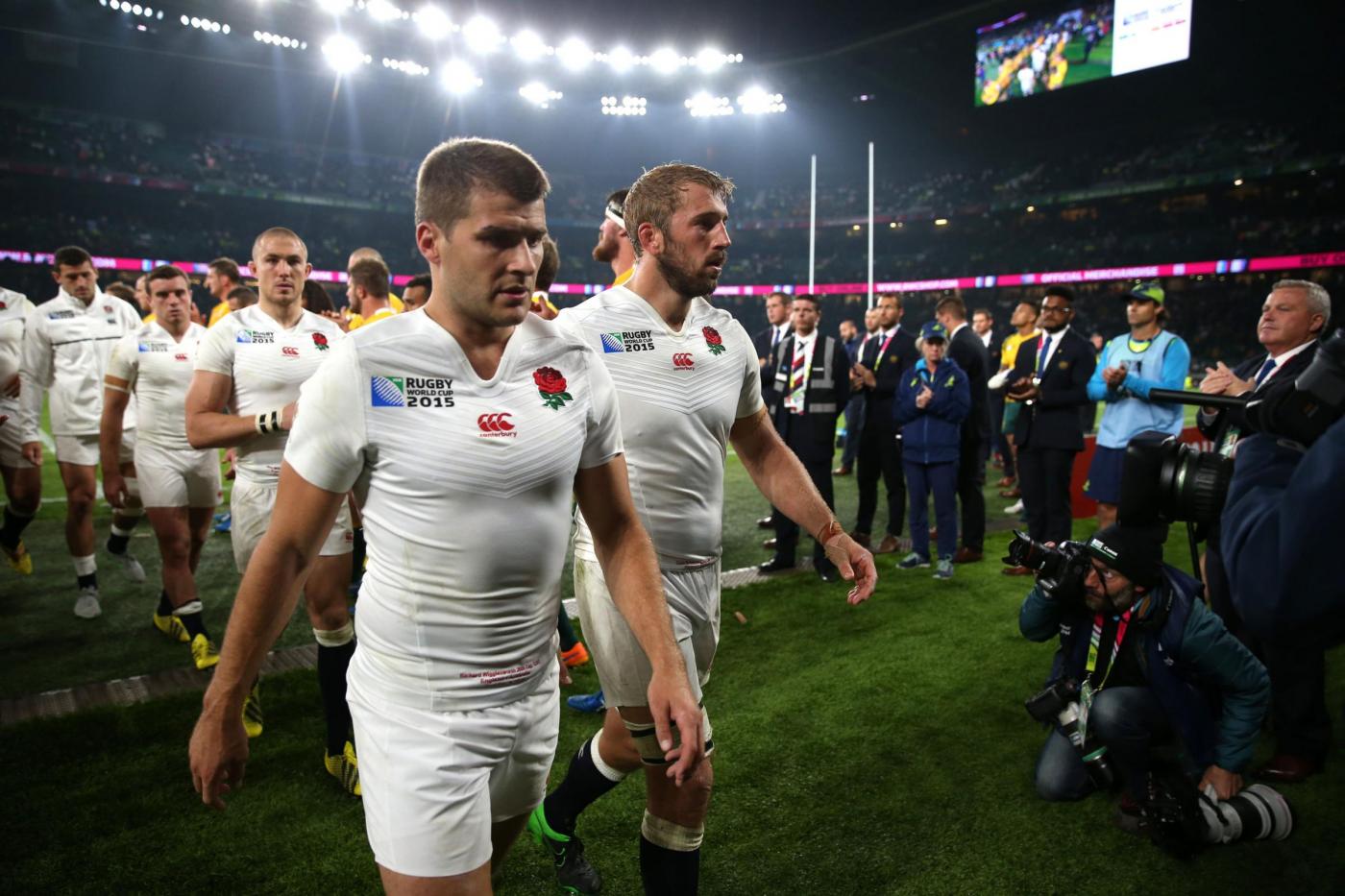 File photo dated 03-10-2015 of England’s Chris Robshaw (right) walks off the pitch dejected PRESS ASSOCIATION Photo. Issue date: Thursday January 28, 2016. It offers an immediate fierce examination for Australian Jones, who succeeded Stuart Lancaster in England’s coaching hot-seat following a World Cup debacle when the host nation suffered a pool stage exit and packed their bags with indecent haste. See PA story RUGBYU Six Nations Overview. Photo credit should read David Davies/PA Wire. LaPresse Only italyCampionato RBS 6 Nazioni – Raccolta foto storiche