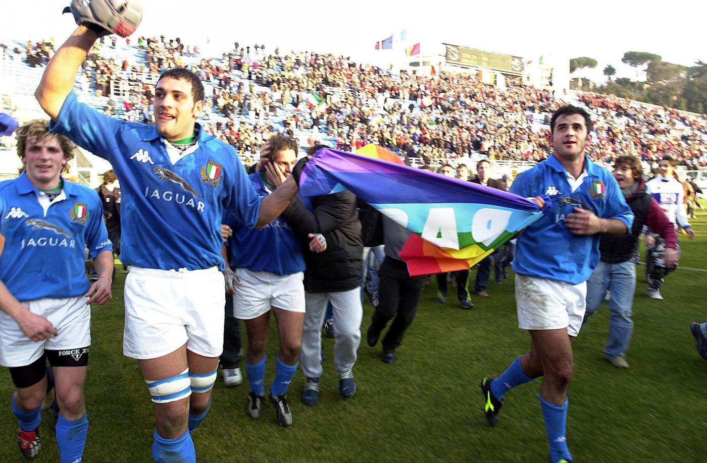 File photo dated 15-02-2003 of Italy’s players celebrate their 30-22 victory over Wales during the RBS 6 Nations match at the Stadio Flaminio, Rome. PRESS ASSOCIATION Photo. Issue date: Thursday January 28, 2016. But there were 14 more defeats before their second victory, against Wales in the opening game in 2003. See PA story RUGBYU Six Nations Italy. Photo credit should read David Jones/PA Wire. LaPresse Only italyCampionato RBS 6 Nazioni – Raccolta foto storiche
