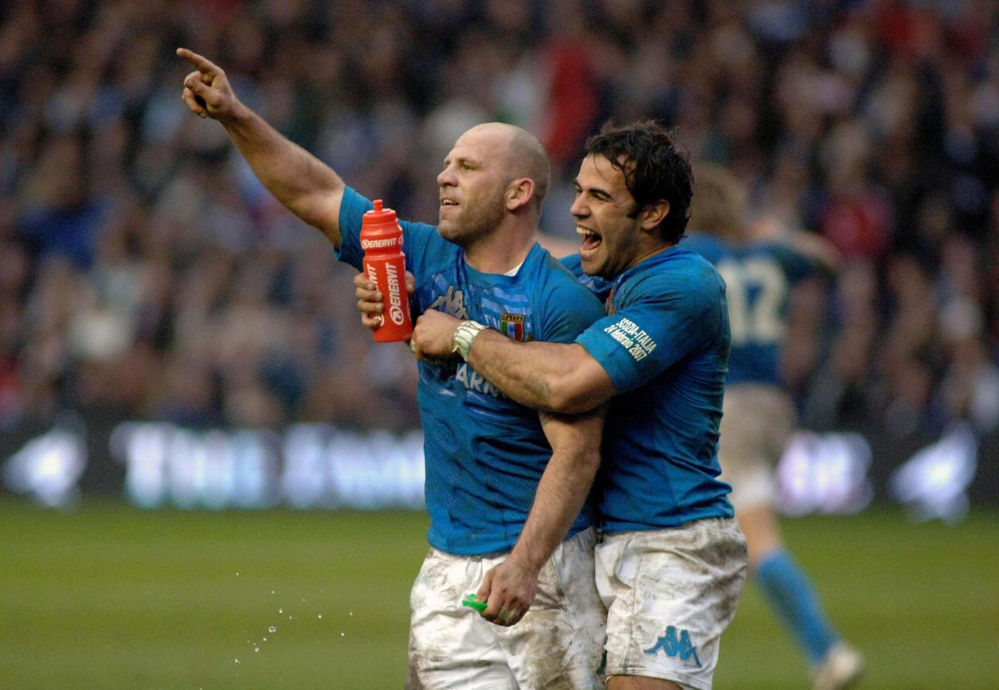File photo dated 24-02-2007 of Italy’s Alessandro Troncon celebrates scoring a try against Scotland with Conzalo Canale during the RBS 6 Nations match at Murrayfield, Edinburgh. PRESS ASSOCIATION Photo. Issue date: Thursday January 28, 2016. Their first away win came in 2007, in Edinburgh, when they finished fourth for the first time. Fourth (in 2007 and 2013) remains their best placing. See PA story RUGBYU Six Nations Italy. Photo credit should read Angus Blackburn/PA Wire. LaPresse Only italyCampionato RBS 6 Nazioni – Raccolta foto storiche