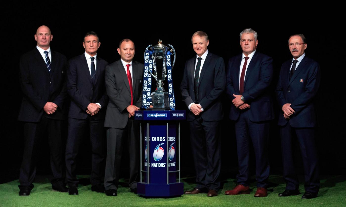 File photo dated 27-01-2016 of (From left to right) Scotland head coach Vern Cotter, France head coach Guy Noves, England head coach Eddie Jones, Ireland head coach Joe Schmidt, Wales head coach Warren Gatland and Italy head coach Jacques Brunel during the RBS 6 Nations Media Launch at The Hurlingham Club, London. PRESS ASSOCIATION Photo. Issue date: Thursday January 28, 2016. But perhaps for the first time in Six Nations history, there are possibly five countries holding genuine title aspirations, which suggests a thrilling battle to secure silverware See PA story RUGBYU Six Nations Overview. Photo credit should read John Walton/PA Wire. LaPresse Only italyCampionato RBS 6 Nazioni – Raccolta foto storiche