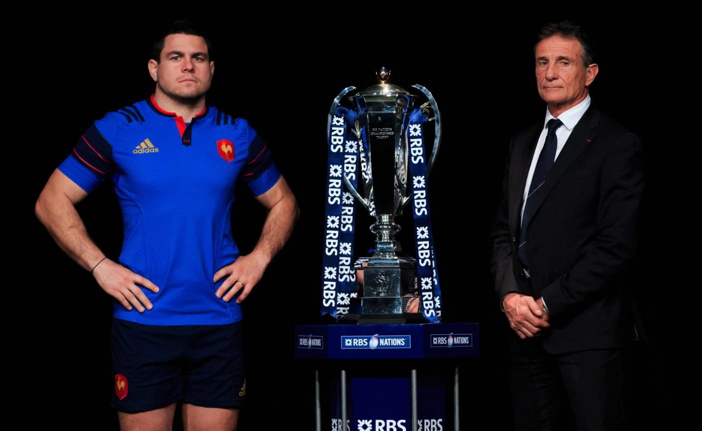 File photo dated 27-01-2016 of France captain Guilhem Guirado (left) and head coach Guy Noves alongside the Six Nations trophy during the RBS 6 Nations Media Launch at The Hurlingham Club, London. PRESS ASSOCIATION Photo. Issue date: Thursday January 28, 2016. France enter a new era with Guy Noves at the helm and the angst-ridden Philippe Saint-Andre reign condemned to history. See PA story RUGBYU Six Nations France. Photo credit should read John Walton/PA Wire. LaPresse Only italyCampionato RBS 6 Nazioni – Raccolta foto storiche