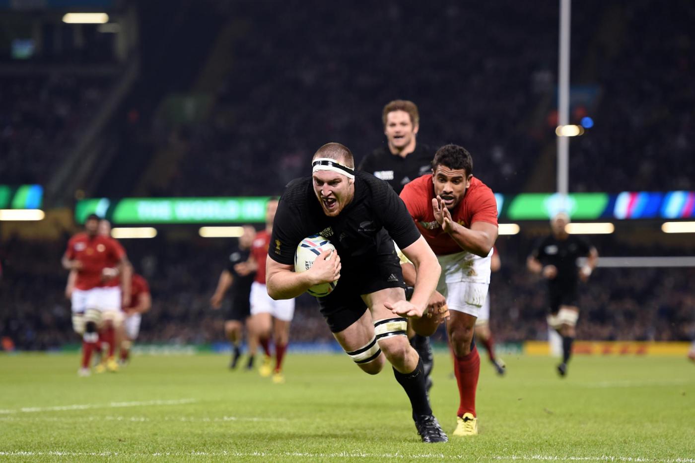 File photo dated 17-10-2015 of New Zealand’s Brodie Retallick scores his side’s first try of the game during the Rugby World Cup game at The Millennium Stadium, Cardiff. PRESS ASSOCIATION Photo. Issue date: Thursday January 28, 2016. That record 62-13 defeat left French rugby with a serious bout of navel-gazing, but the good news for Noves is that it surely cannot get any worse for Les Bleus. See PA story RUGBYU Six Nations France. Photo credit should read Andrew Matthews/PA Wire. LaPresse Only italyCampionato RBS 6 Nazioni – Raccolta foto storiche