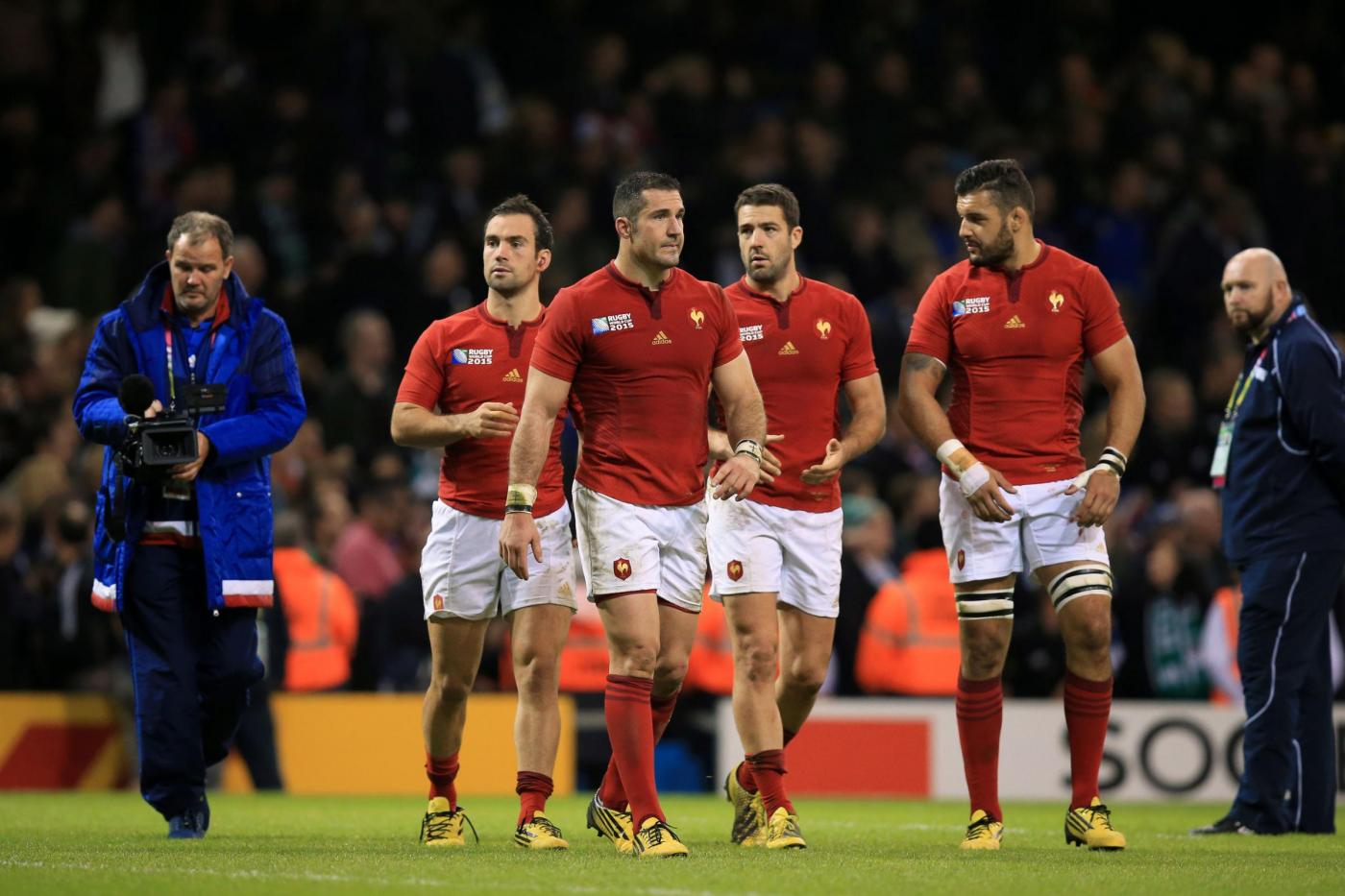 File photo dated 17-10-2015 of France’s Scott Spedding (centre) stands dejected with teammates after the final whistle of the Rugby World Cup game at The Millennium Stadium, Cardiff. PRESS ASSOCIATION Photo. Issue date: Thursday January 28, 2016. That record 62-13 defeat left French rugby with a serious bout of navel-gazing, but the good news for Noves is that it surely cannot get any worse for Les Bleus. See PA story RUGBYU Six Nations France. Photo credit should read Mike Egerton/PA Wire. LaPresse Only italyCampionato RBS 6 Nazioni – Raccolta foto storiche