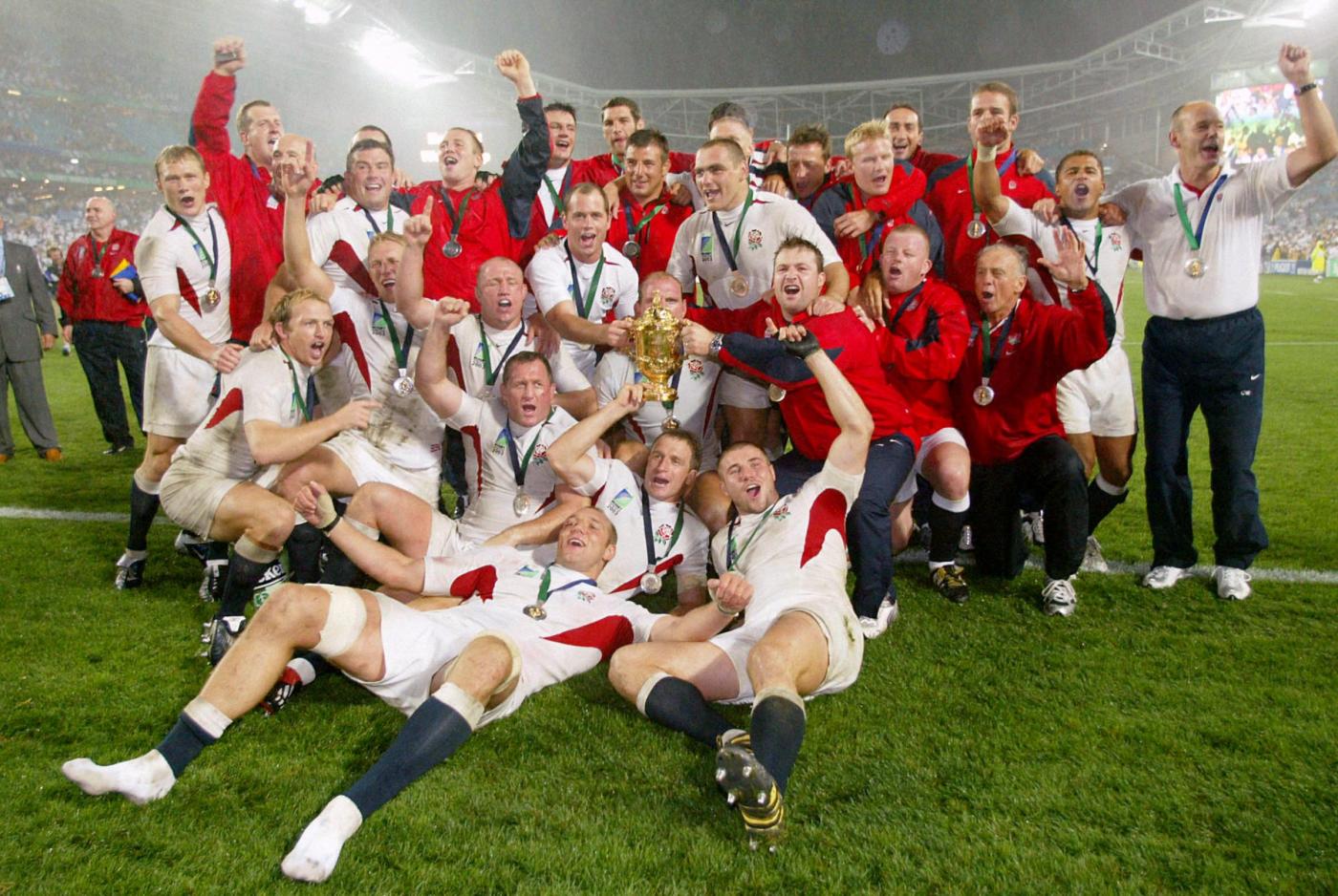 File photo dated 22-11-2003 of England team celebrate with the Webb Ellis trophy after beating Australia in the Rugby World Cup Final at the Telstra Stadium, Sydney, Australia. PRESS ASSOCIATION Photo. Issue date: Thursday January 28, 2016. Since Martin Johnson lifted the Webb Ellis Cup in 2003, Twickenham has celebrated only one title ??? delivered in 2011 as the highlight of Johnson???s reign as manager – while Wales, Ireland and France have shared the remaining crowns over the last 12 years. See PA story RUGBYU Six Nations England. Photo credit should read David Davies/PA Wire. LaPresse Only italyCampionato RBS 6 Nazioni – Raccolta foto storiche